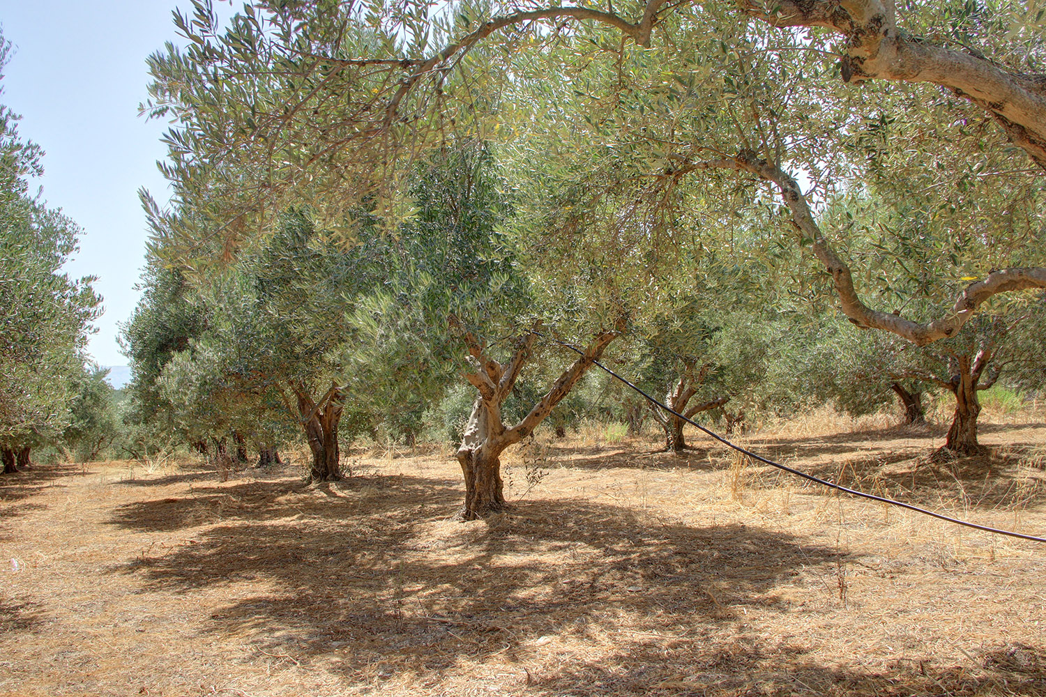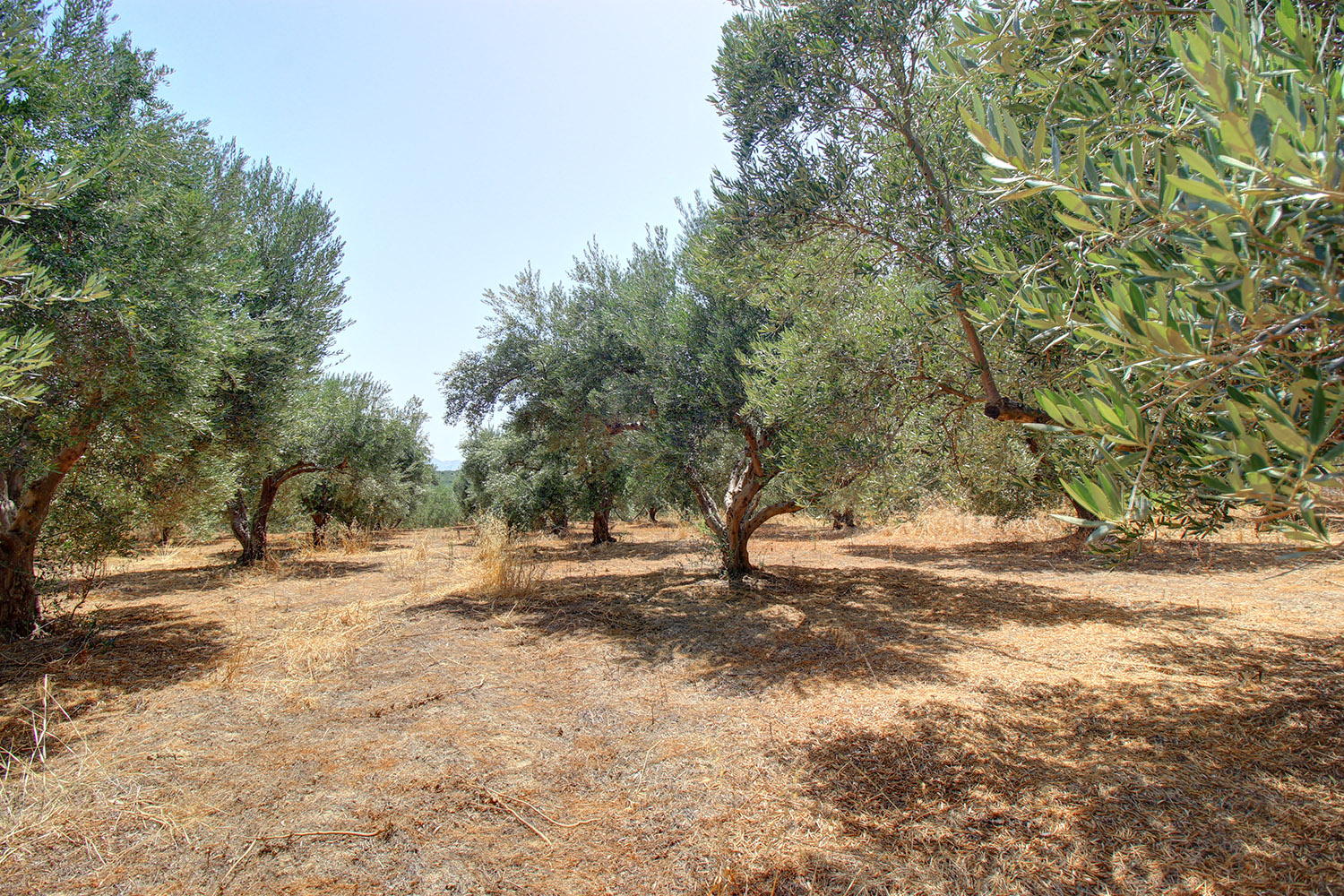 Das Anwesen befindet sich etwas außerhalb der Küste von Kolymbari in der Gemeinde Platanias. Es liegt an einem Hang mit Ostorientierung und leichter Hanglage, von wo aus es einen hervorragenden Blick auf das Meer und die Insel Agios Theodoros sowie nach Süden und den Kamm der Weißen Berge bietet. Seine Fassade befindet sich auf der Nordseite auf einer Asphaltstraße. Seine Form ist quadratisch und es gibt etwa 50 ausgewachsene und ertragreiche Olivenbäume.