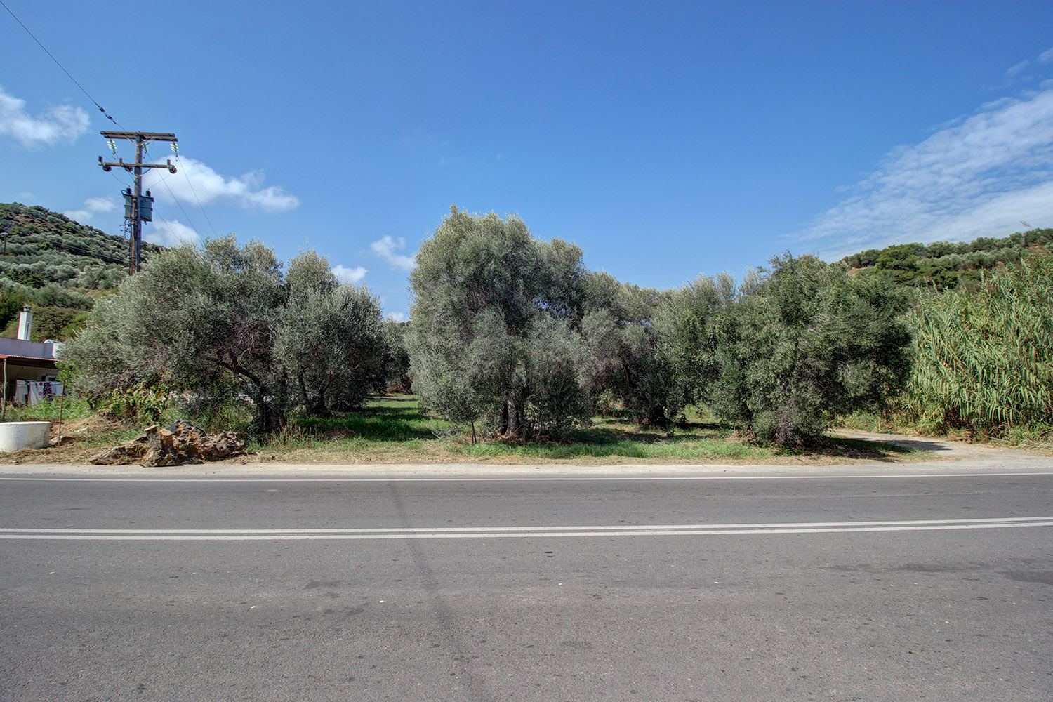 Das Anwesen befindet sich an der Provinzstraße nach Tavronitis-Voukolies. Es hat eine gute, fast rechteckige Form mit einer Hauptfront von 20 m und einer zweiten Front auf einem 47 m langen Feldweg. Es befindet sich an einer gut sichtbaren Stelle, aber auch nach einer Abbiegung, was es für den professionellen Einsatz geeignet macht. Der Boden ist fast flach mit einem leichten Osthang und es gibt 18 ausgewachsene und ertragreiche Olivenbäume.