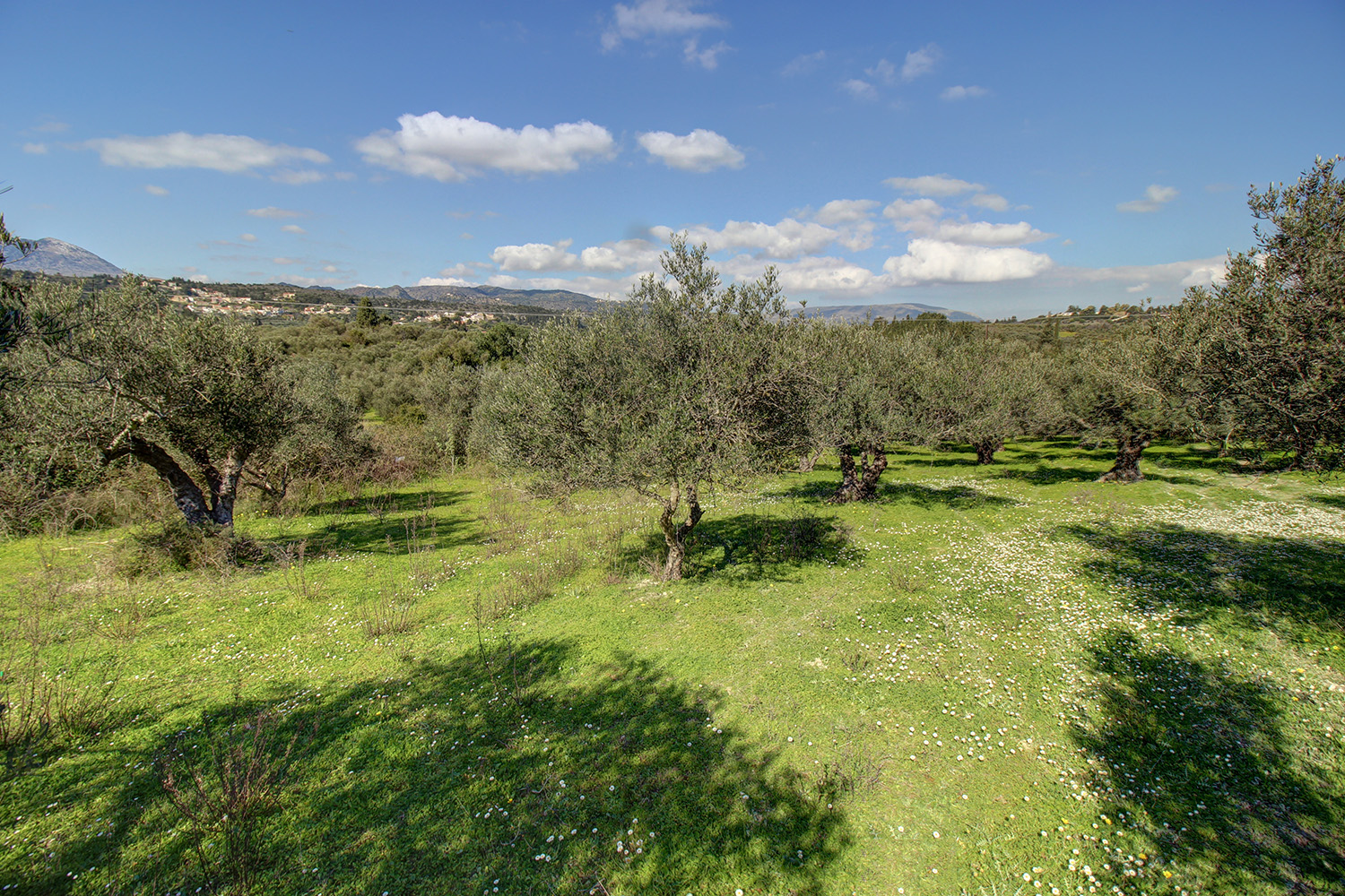 Das Anwesen befindet sich in einem Gebiet mit einfachem Zugang und hat eine große Front an einer asphaltierten Straße. Das Land ist fast flach mit einem sanften Westhang und hat etwa 110 reife und produktive Olivenbäume. Tatsächlich handelt es sich um zwei benachbarte Grundstücke von 2,860 m² und 3,334 m², die vereint und zu einem einzigen Grundstück zusammengelegt werden können. Die Rückseite des Grundstücks grenzt an einen schönen Bach. Die Aussicht von allen Punkten ist ausgezeichnet in Richtung der Weißen Berge im Süden sowie über eine grüne Ebene im Westen.