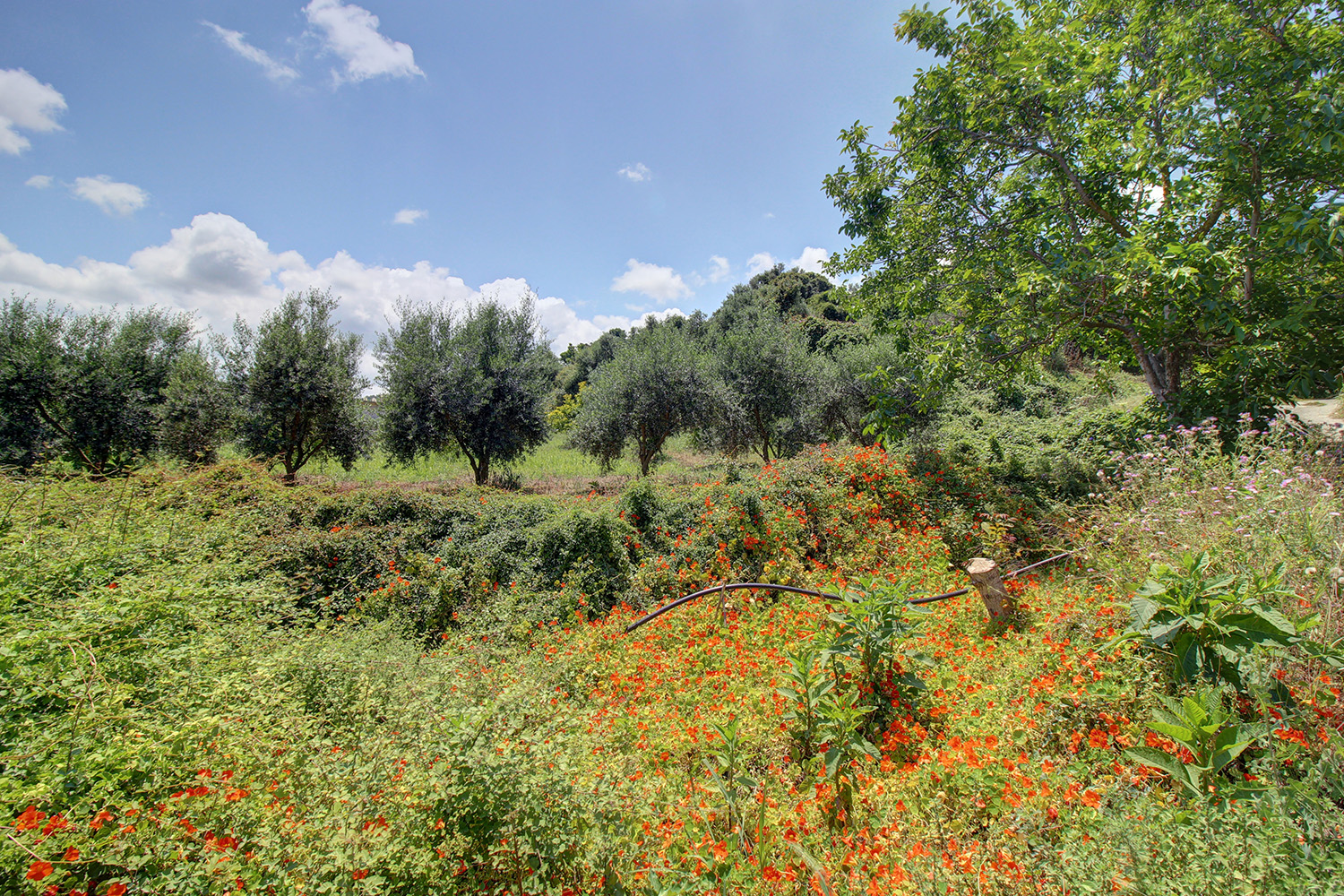 Die Unterkunft liegt etwa 10 Autominuten vom Zentrum von Platanias entfernt, westlich von Chania. Es handelt sich um ein Grundstück im Wohngebiet, das in bis zu 5 unabhängige Abschnitte unterteilt werden kann. Die maximal zulässige bebaubare Fläche ist recht hoch und Sie können daher eine Wohnanlage zur Nutzung oder zum Weiterverkauf errichten. Das Gelände ist leicht nach Osten geneigt und weist an der tiefsten Stelle ein Gefälle auf, das eine ungehinderte Aussicht gewährleistet. Es gibt Orangenbäume, Olivenbäume sowie einige andere Obstbäume. Die Aussicht ist wunderschön über ein grünes Tal und bis zum Meer.