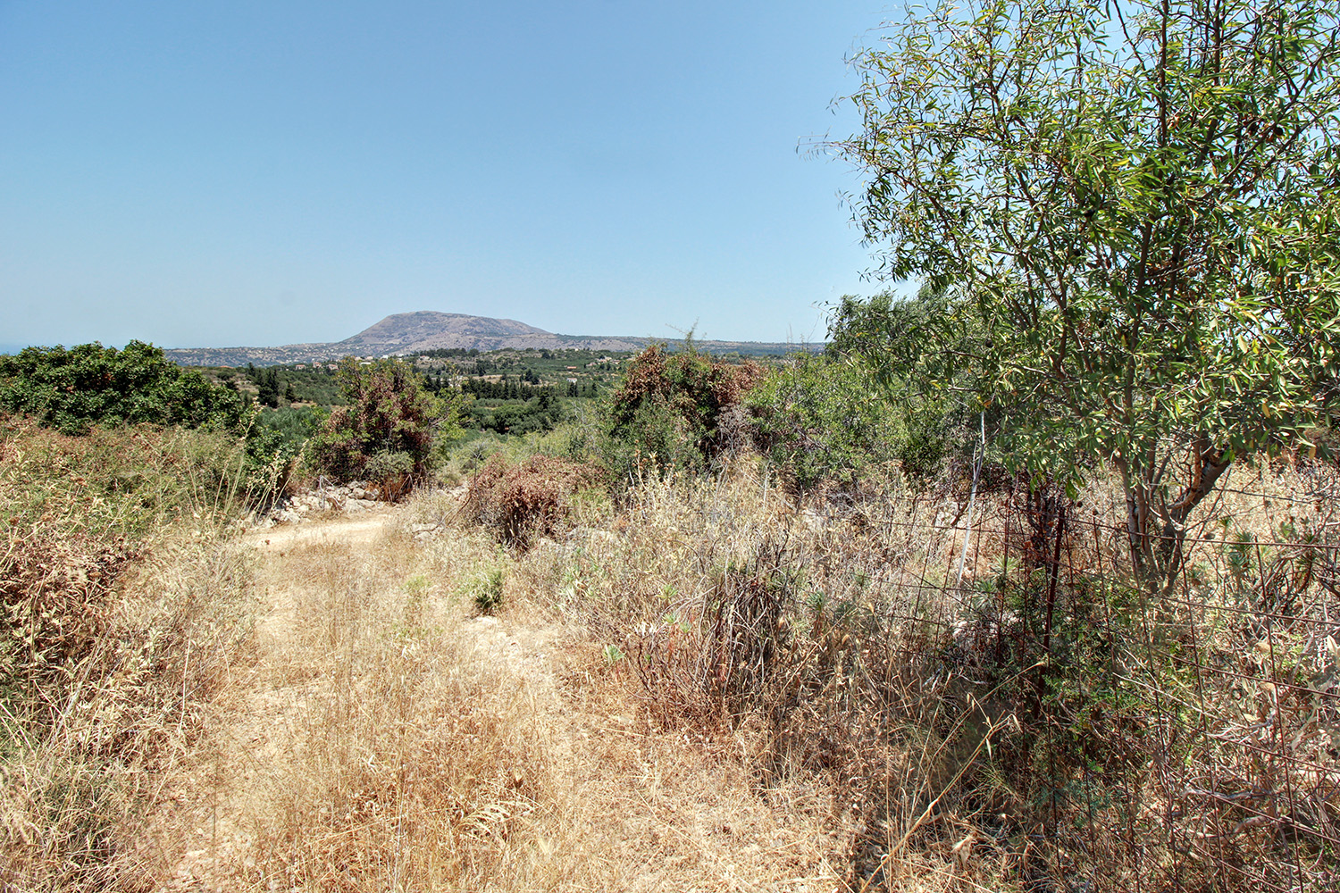 Das Grundstück liegt etwas außerhalb von Vamos, in wunderschöner Natur und dennoch fußläufig zum Ortskern. Es handelt sich um ein bebaubares Grundstück mit Nordfront zu einer Landstraße. Der Boden ist grundsätzlich flach und relativ felsig, während sich im oberen Bereich natürliche Vegetation findet. Das Grundstück liegt an einem Hang mit Ostausrichtung und bietet von allen Seiten einen Blick auf das Dorf im Osten, das Meer im Norden und die Lefkada-Berge im Süden. Größe, Vegetation und Beschaffenheit des Grundstücks gewährleisten absolute Privatsphäre bei allen Ihren Aktivitäten. Der Kauf des Grundstücks eignet sich für den Bau einer großen und luxuriösen Residenz.