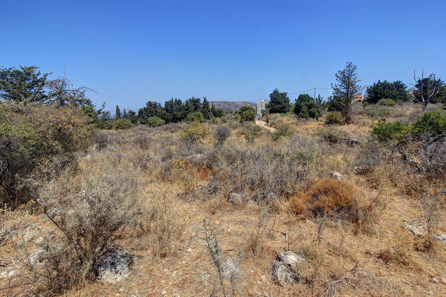 Das Anwesen liegt zwischen den Dörfern Litsarda und Vamos an einem sanft nach Norden geneigten Hang, der einen beeindruckenden Blick auf die Weißen Berge und das Meer in der Ferne bietet. Die Umgebung ist grün und von natürlichen, einheimischen Vegetationsflächen sowie mehreren Luxusvillen umgeben. Eine Schotterstraße, die mit jedem herkömmlichen Fahrzeug leicht befahrbar ist, führt bis zur Grundstücksfront. Die Straße wurde vor 1923 offiziell ausgewiesen und sichert die zulässige Baufläche des Grundstücks. Nach dem Grundstück führt sie als ausgeschilderter Wanderweg weiter. Der Boden weist leichte Neigungen und ist leicht felsig, was die Bebauung erleichtert. Einige große Zypressen stehen in solchen Bereichen, sodass sie in Studien erhalten bleiben und nicht entfernt werden müssen.