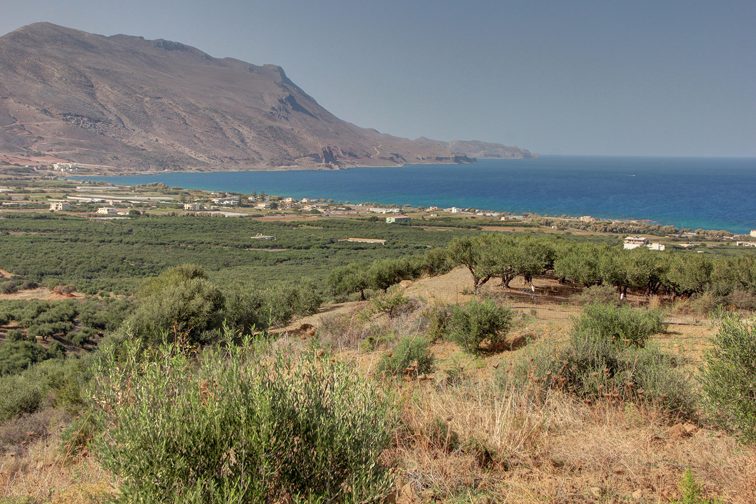 Das Anwesen befindet sich in ruhiger Lage, nur 5 km westlich der kleinen Küstenstadt Kissamos. Es liegt auf einem Hügel mit sanftem Nordhang, von wo aus man einen ungehinderten Blick auf eine malerische Bucht zwischen dem Hafen von Kissamos und dem Kap Vouxa hat. Das Gebiet ist von Olivenhainen umgeben und in der Ferne gibt es nur wenige Villen. Eine Landstraße erreicht den Standort auf etwas weniger als 1 km Länge.
