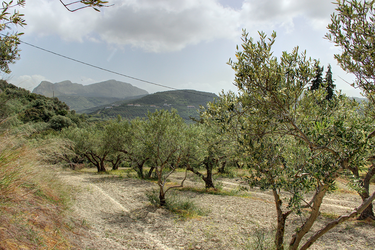 Das Land befindet sich in einem kleinen Viertel außerhalb von Mithimna in Kissamos. Es enthält ungefähr 100 reife und produktive Olivenbäume. Das Grundstück ist geneigt und nach Westen ausgerichtet. Es ist in große Terrassen mit leichter Neigung unterteilt. Im untersten Bereich gibt es einen Bach, von dem aus sich das Anwesen nach oben hin zu einem Hügel mit herrlichem Blick über die Bucht von Kissamos erstreckt.