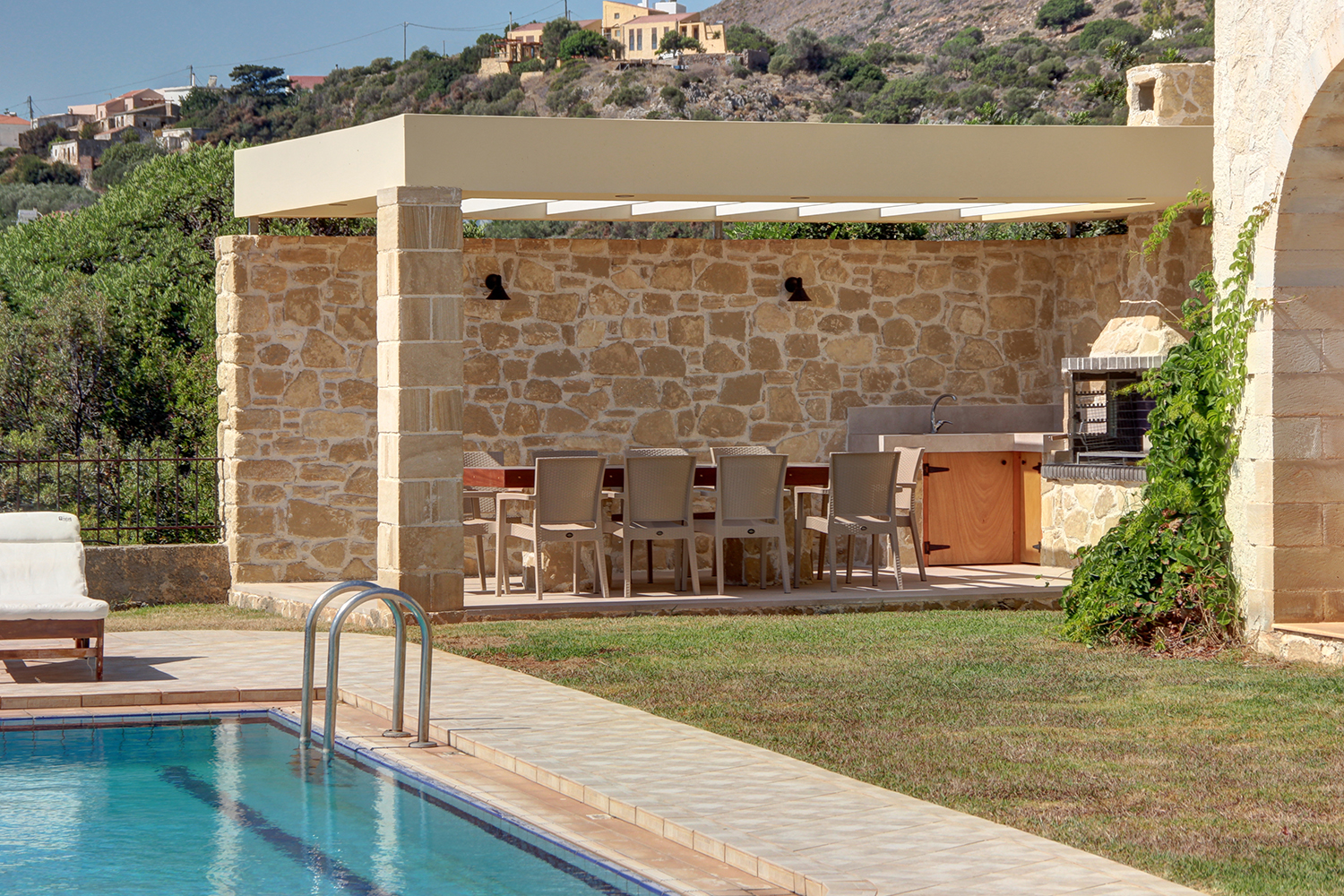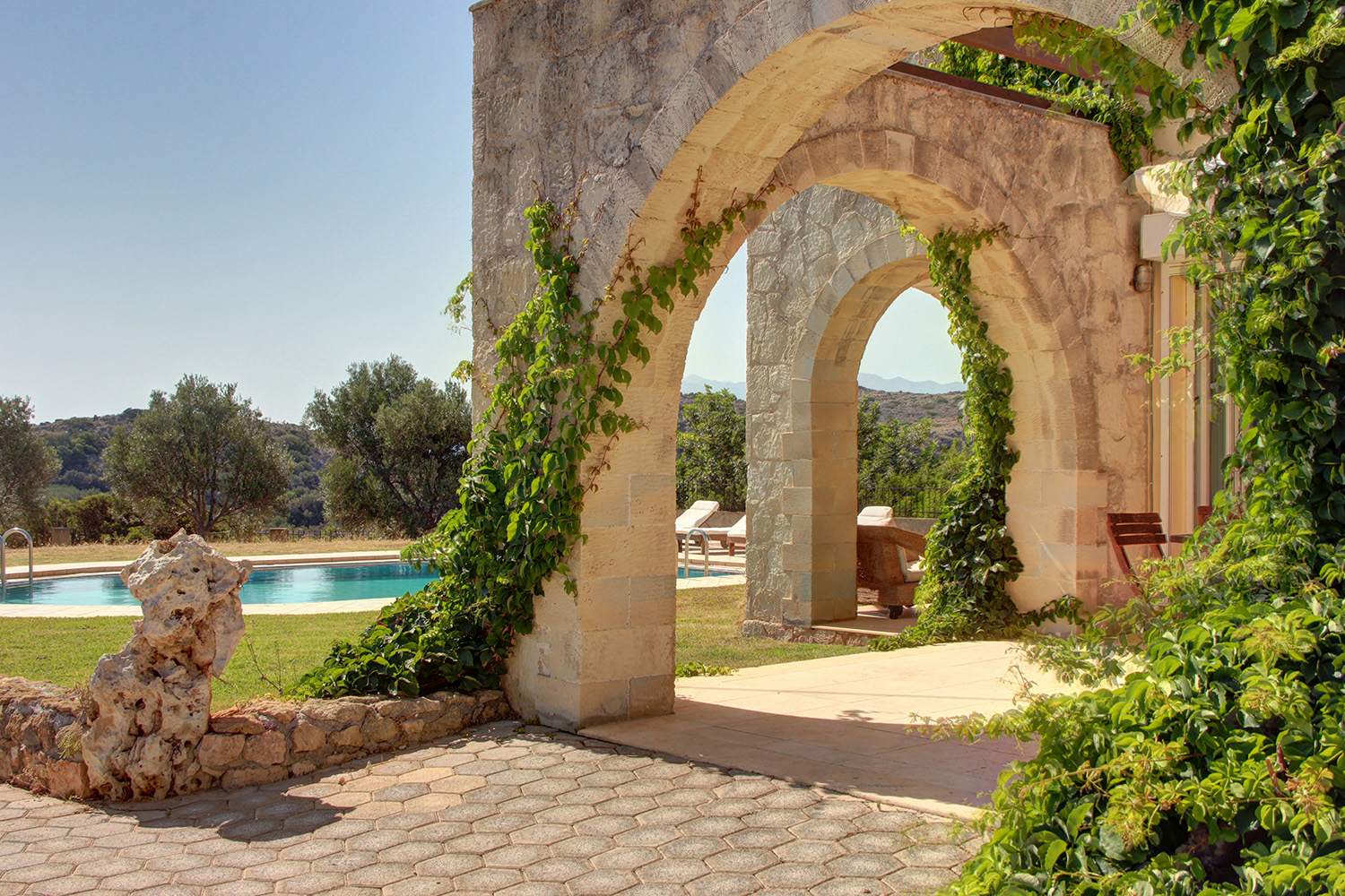 Die Unterkunft befindet sich etwa 10 Autominuten von der Küstenstadt Kolymbari und 35 Minuten vom Stadtzentrum von Chania entfernt. Es ist eine luxuriöse Villa, die auf einem Osthang gebaut wurde und von der aus Sie einen Panoramablick auf die Weißen Berge, die grünen Hügel und das Meer haben. Das Gebiet ist spärlich bebaut und um das Grundstück herum gibt es hauptsächlich Gebiete mit wilder einheimischer Vegetation. Alle Bereiche des Hauses sind groß und hell, um ein komfortables und luxuriöses Leben zu ermöglichen.