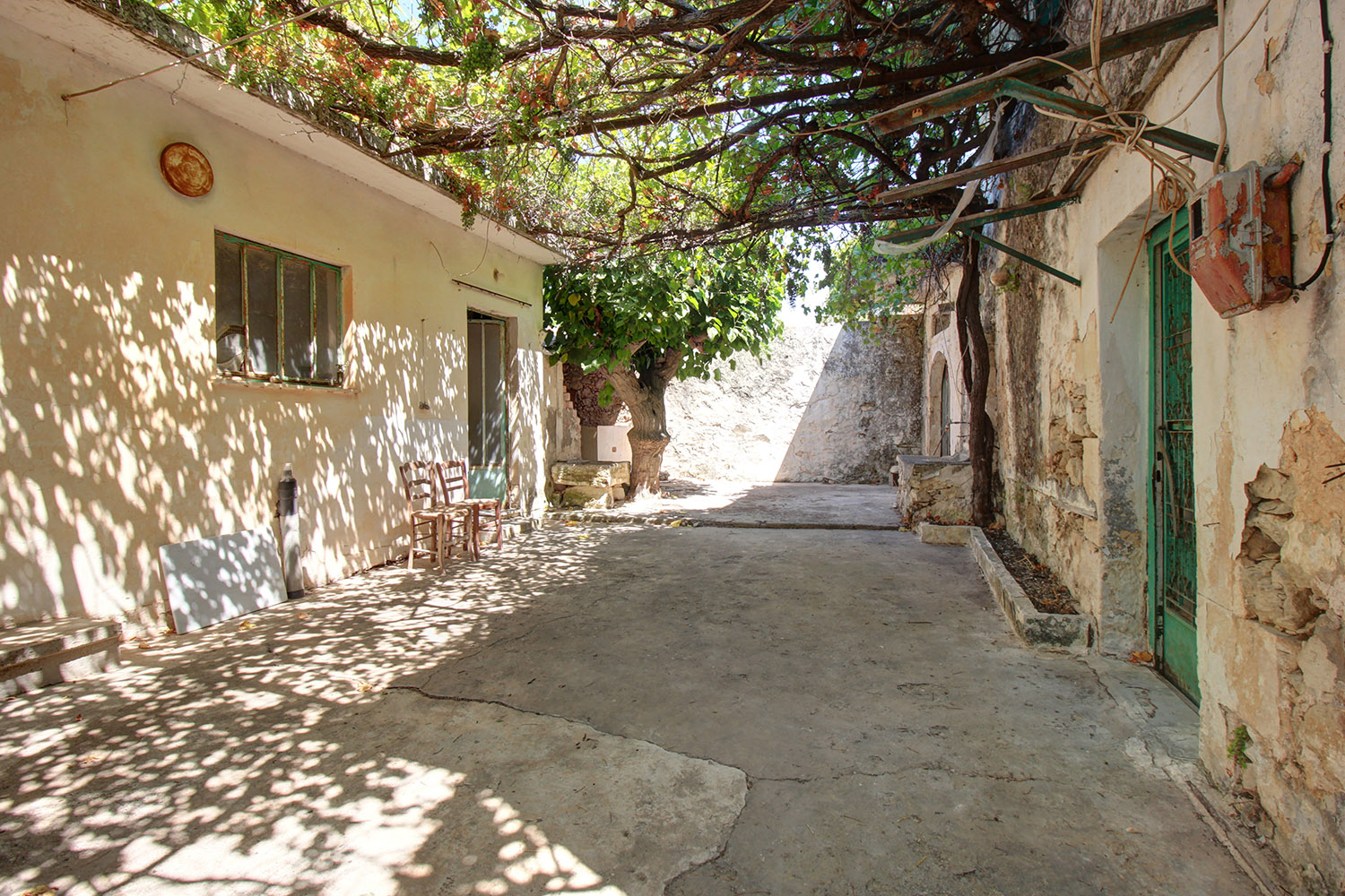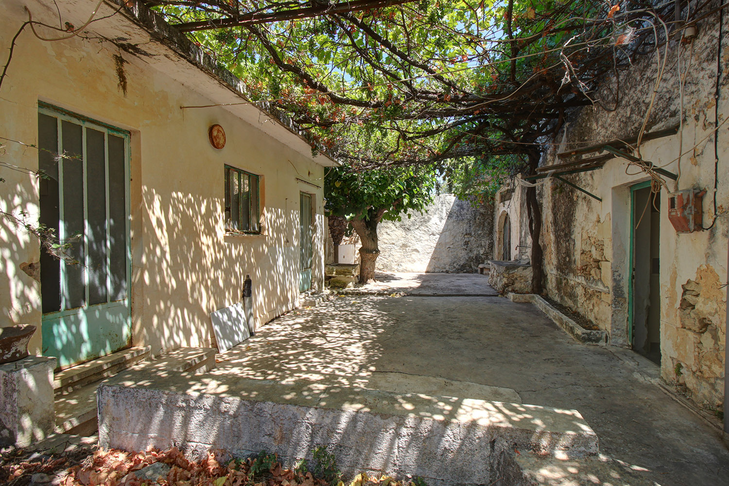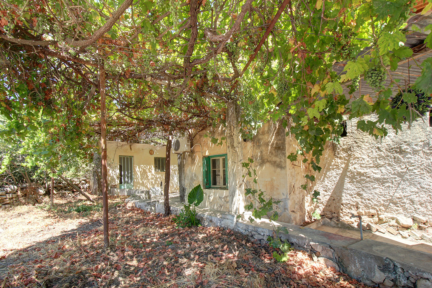 Das Haus ist in zwei gegenüberliegende Gebäude mit 116 m² und 22 m² aufgeteilt, die einen Innenhof umgeben. Das Grundstück ist mit einer Trockenmauer und niedrigen Mauern eingezäunt, und die beiden Gebäude befinden sich in Bereichen, die eine optimale Nutzung des Grundstücks ermöglichen. An der Vorderseite gibt es Platz für bis zu zwei private Parkplätze sowie Platz für einen Blumengarten oder einen kleinen Swimmingpool. Auf der Rückseite befindet sich außerdem eine traditionelle Weinpresse. In dem kleinen Gebäude befinden sich das alte externe Badezimmer sowie die alte Küche. Das größte der Gebäude ist zweistöckig und umfasst ein Erdgeschoss mit 79 m² und eine alte „Oda“ im Obergeschoss mit ca. 37 m². Ohne besondere Änderungen am bestehenden Grundriss bietet das Anwesen die Möglichkeit, zwei komfortable Schlafzimmer im Hauptgebäude und ein schönes Gästehaus gegenüber zu schaffen.