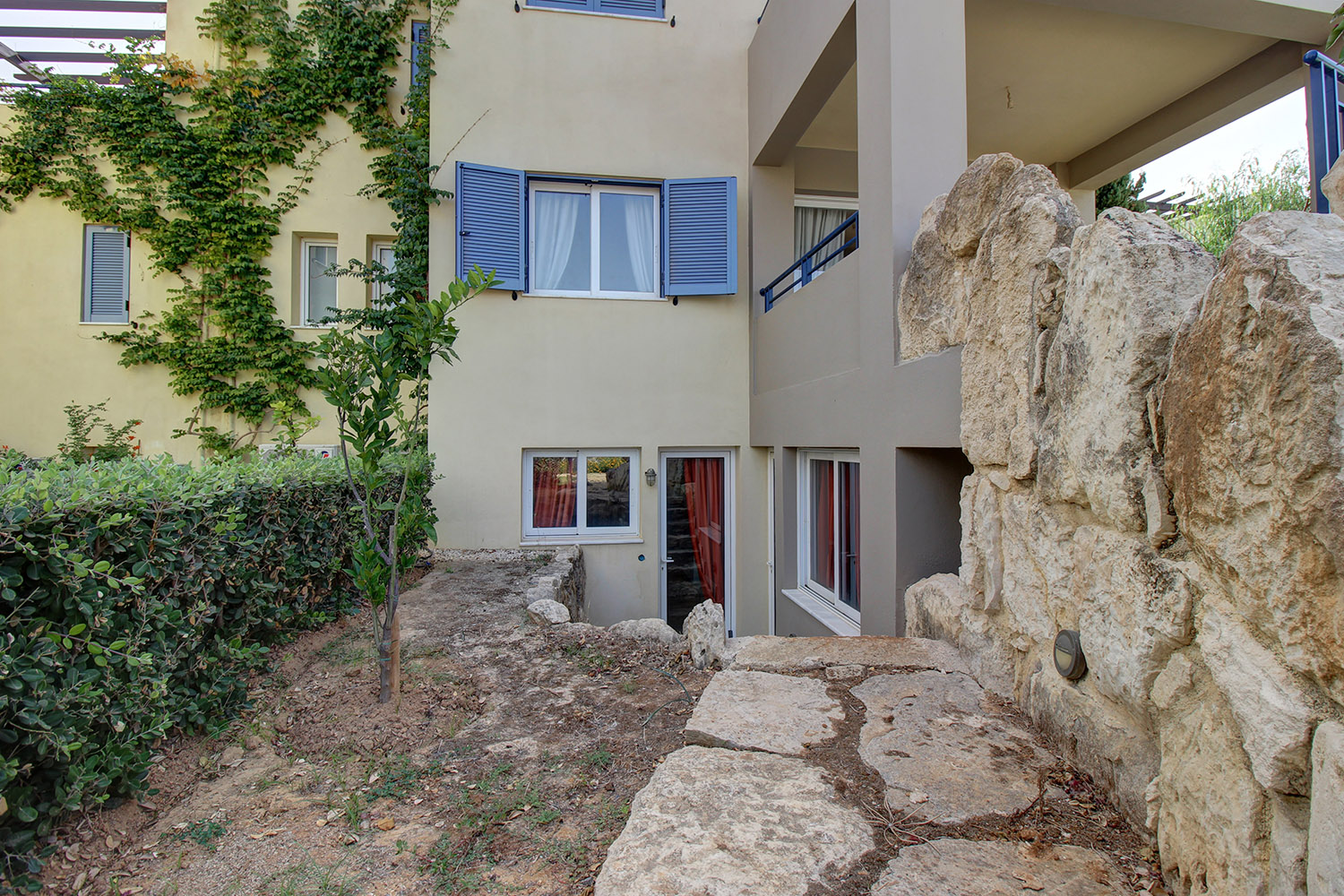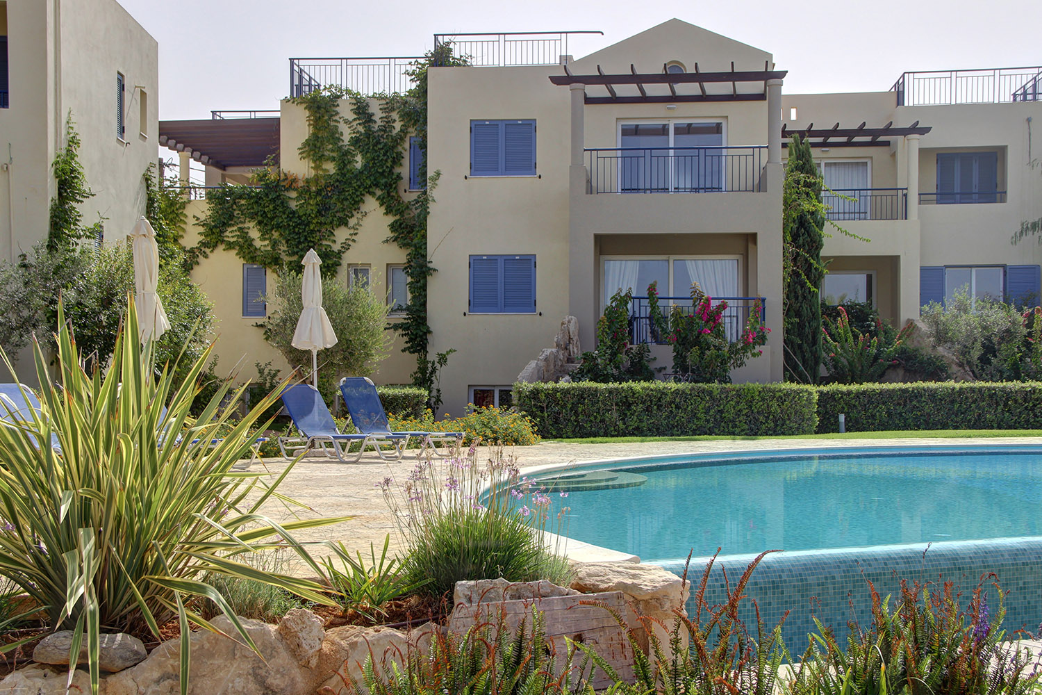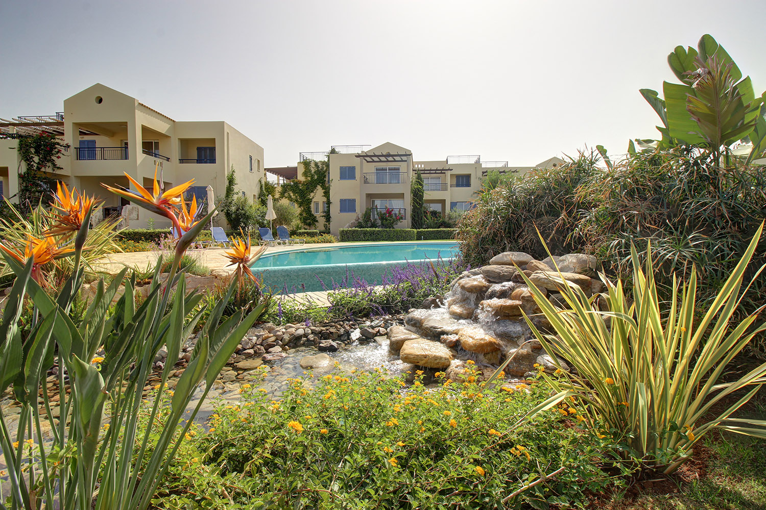 Die Wohnung befindet sich in einem luxuriösen Küstenkomplex, etwa 20 Autominuten westlich der Stadt Chania. Der Komplex befindet sich direkt vor dem schönen Strand von Pyrgos Psiloneros und verfügt über große, üppige Gärten und einen eleganten Themenpool von 250 m². Die Gegend ist wunderschön urban und entlang des Strandes gibt es Bänke sowie Promenaden und viel Grün. Der Strand hat Flecken mit Sand oder Kieselsteinen. Es ist ziemlich groß und bietet Optionen in organisierten oder isolierten Abschnitten.