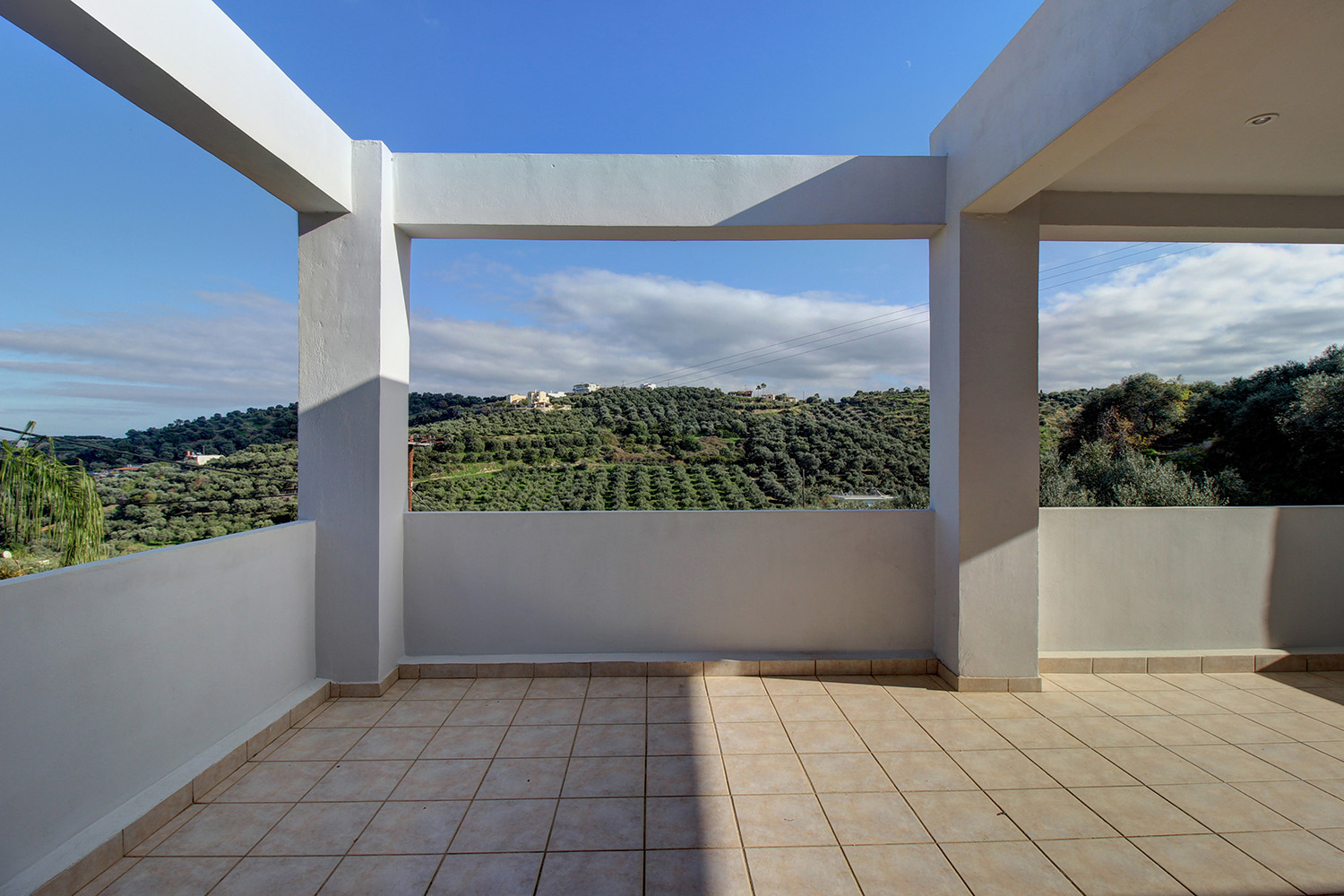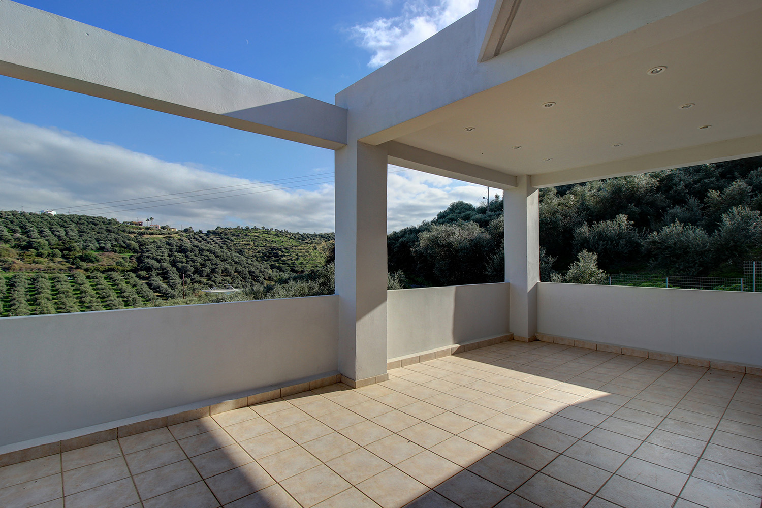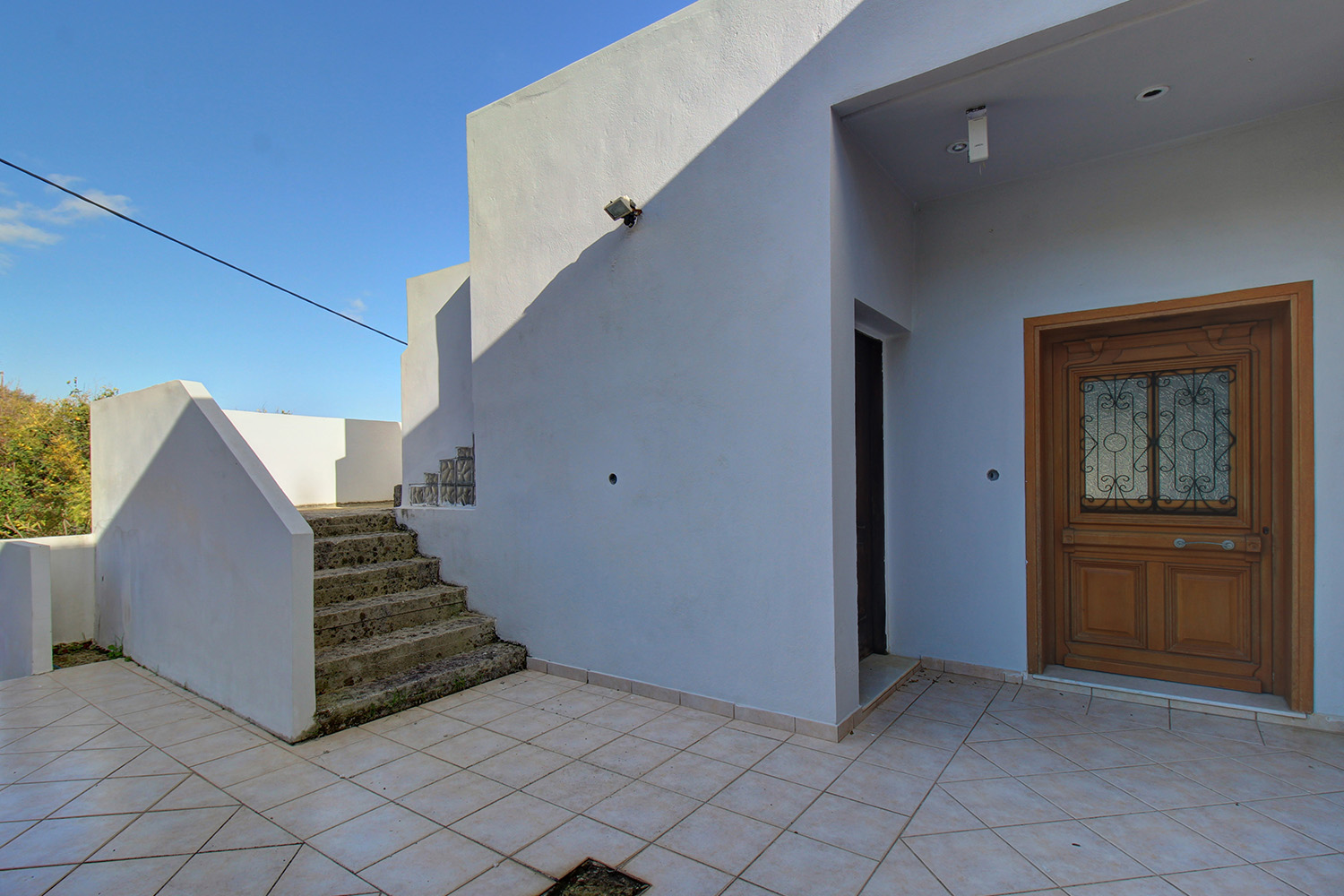 Das Erdgeschoss besteht aus einem offenen Wohn- und Küchenbereich, zwei Schlafzimmern und zwei Badezimmern mit Dusche. Die gut erhaltenen Möbel sind im Verkaufspreis enthalten. Es gibt moderne Aluminiumfenster und -türen sowie Klimaanlagen in allen Bereichen. Im Obergeschoss finden wir einen extrem großen offenen, L-förmigen Wohn- und Küchenbereich. Im Wohnbereich gibt es einen Kamin sowie einen Ausgang zu einer großen Terrasse mit schönem Blick bis zum Meer, das sich entlang der Nord- und Ostseite erstreckt. Die drei Schlafzimmer nehmen die Südseite des Stockwerks ein und es gibt auch zwei Badezimmer. Die Fenster und Türen sind aus Holz und es gibt eine Klimaanlage in einem Schlafzimmer. Das Anwesen ist mit einem Solarpanel sowie einer für jede Etage unabhängigen Zentralheizung mit Radiatoren und einem Ölkessel ausgestattet.