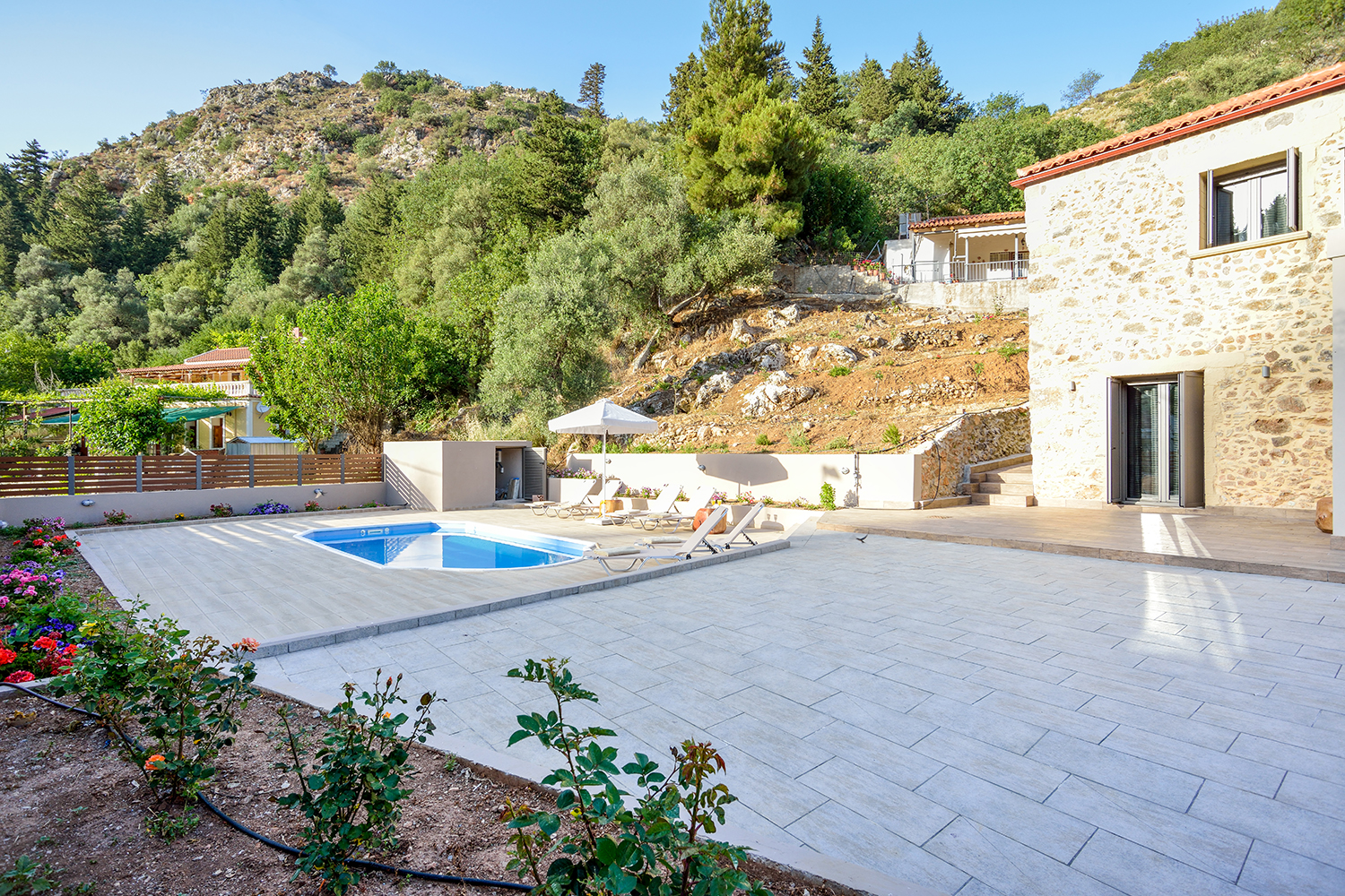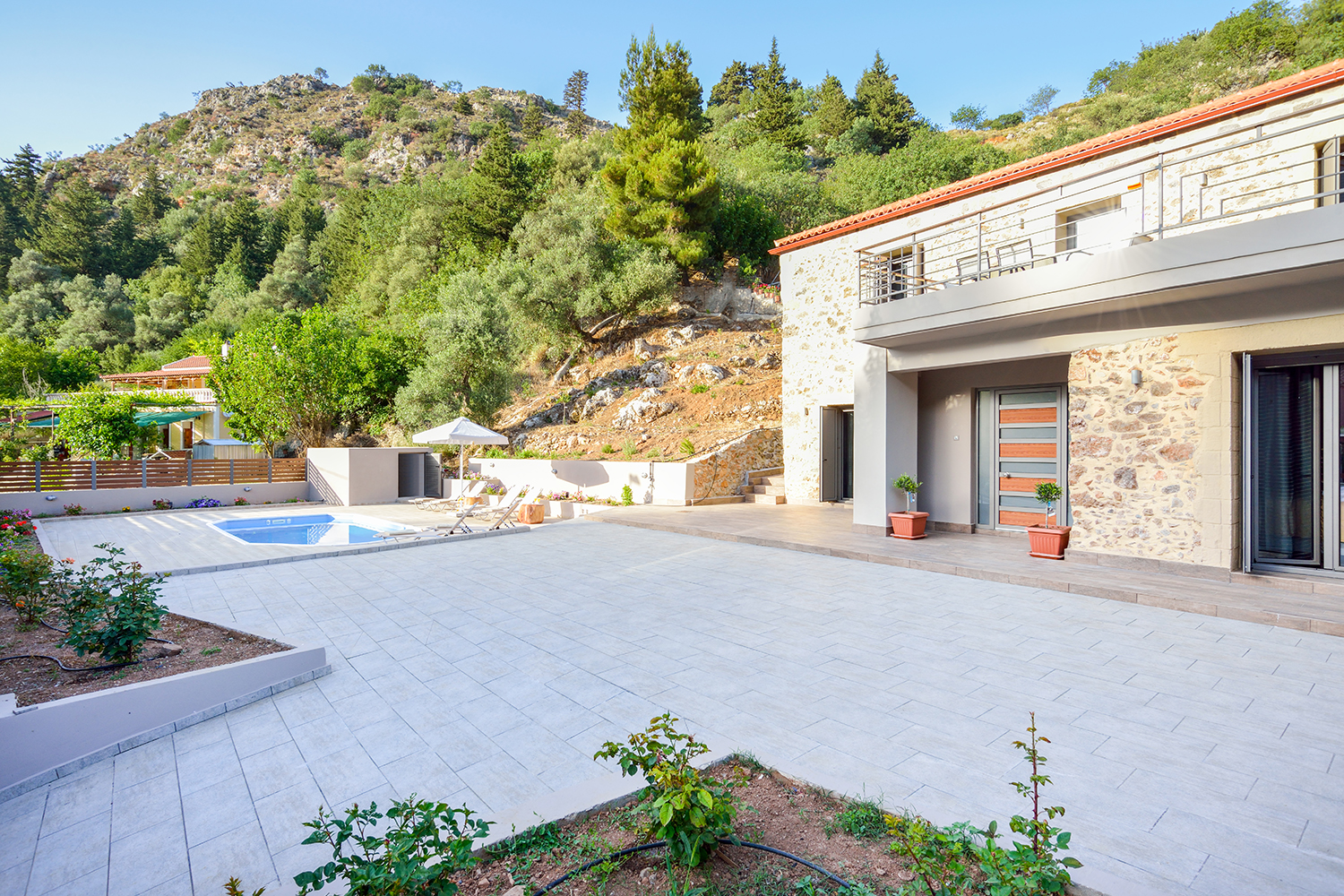 Das historische Dorf empfängt das ganze Jahr über viele Besucher und hat recht gute Einrichtungen und einen starken traditionellen Charakter. Es hat ein Folkloremuseum und ist berühmt für das gute Essen, das Sie in seinen vielen Tavernen finden können. Der Weg zum Anwesen ist ausgezeichnet, da die Straße durch ein grünes Tal mit beeindruckenden Felsformationen und großen Platanen führt. Das Stadtzentrum und der Flughafen von Chania sind etwa 30 bzw. 45 Autominuten entfernt.