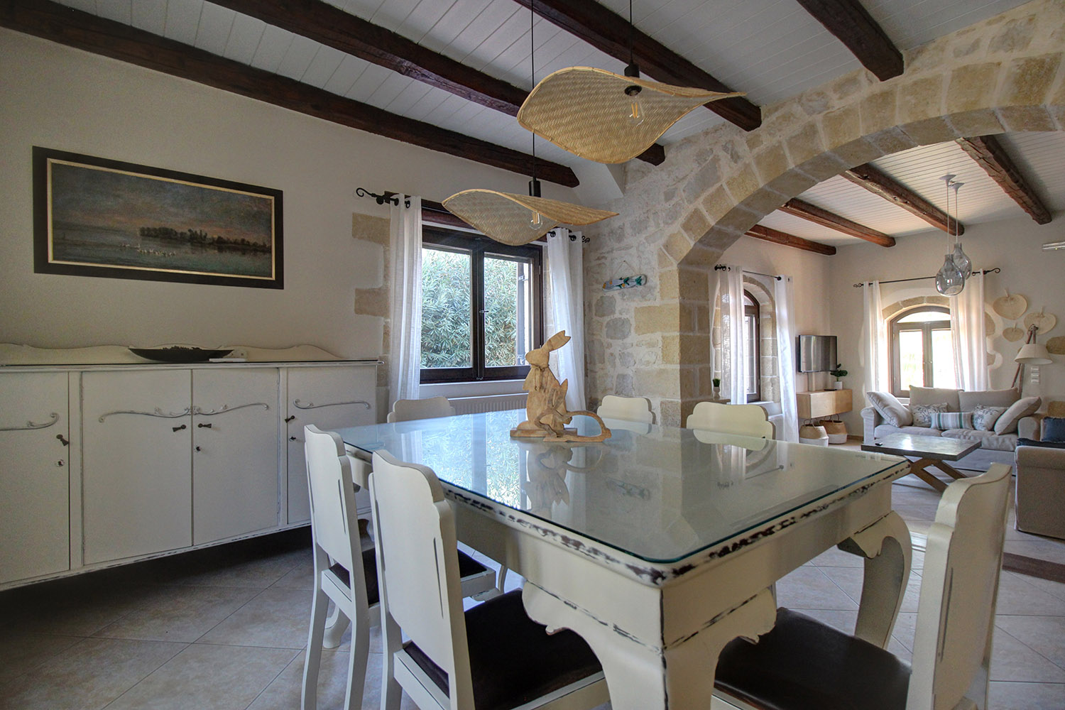 Das Anwesen befindet sich in einem Dorf südlich von Kolymbari, an einem Ort mit hervorragender Aussicht nach Südosten auf die Weißen Berge und die umliegenden Olivenhaine. Es handelt sich um ein freistehendes Steinhaus, das auf einem vollständig begrünten Grundstück mit drei Fassaden gebaut wurde. Der Innenraum bietet komfortable Räume und viel Licht. Rund um das Gebäude wurden geschmackvolle Entspannungsbereiche mit sehr guter Privatsphäre geschaffen.