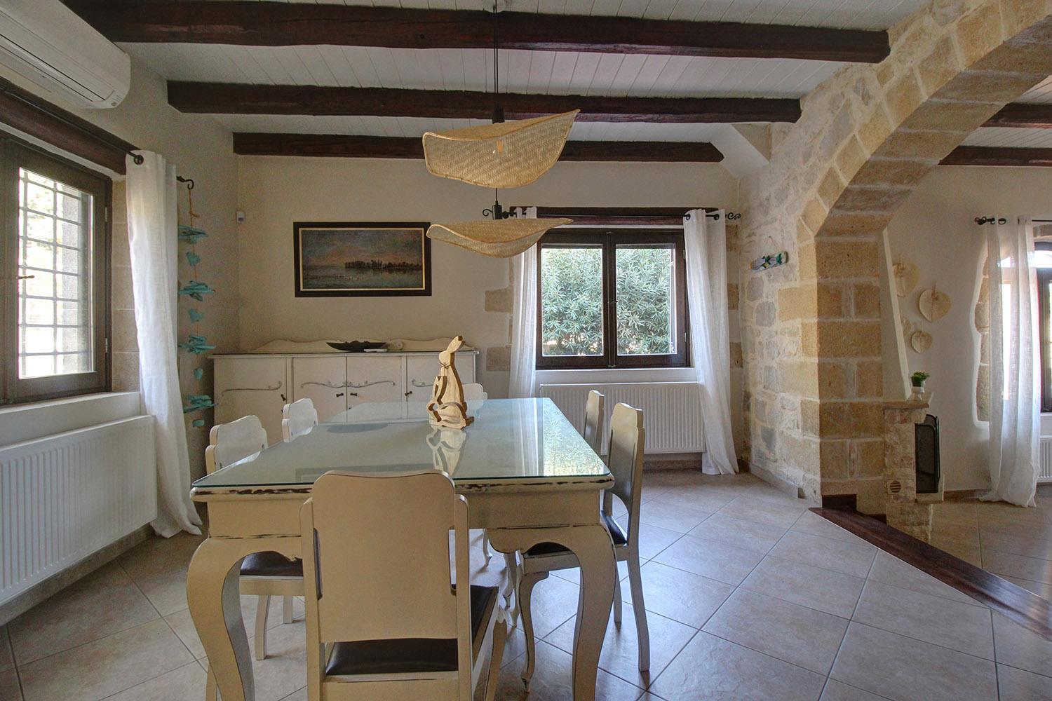 Die Residenz ist luxuriös eingerichtet und im Verkaufspreis sind alle vorhandenen Möbel und Elektrogeräte enthalten. Es verfügt über eine Zentralheizung mit Heizkörpern und Ölkessel, Solarpanel und Klimaanlagen in allen Bereichen. Es wurde ebenfalls ausgestaltet und wird für touristische Zwecke genutzt. Es ist in ausgezeichnetem Zustand und sofort bewohnbar.