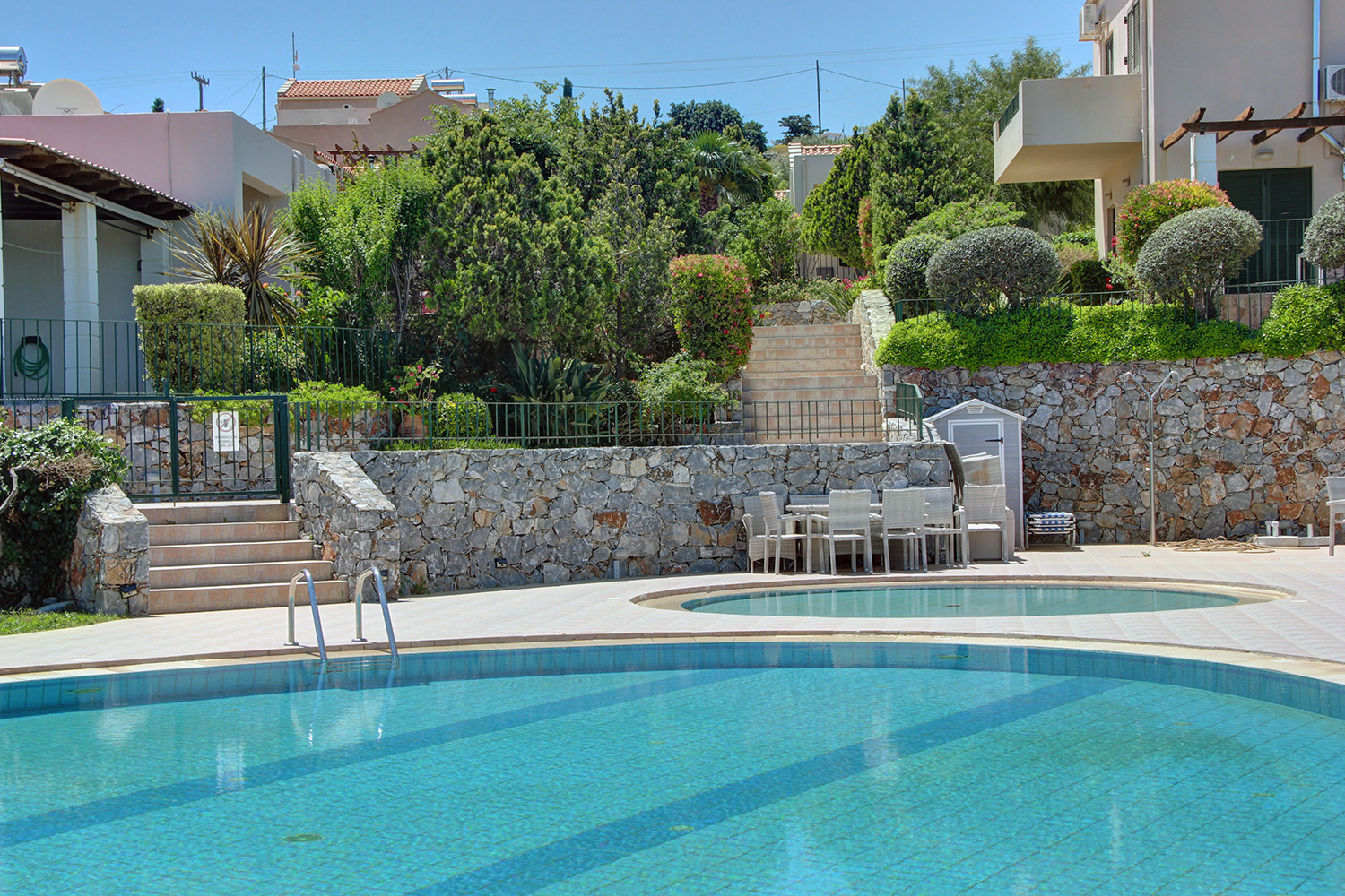 Die Residenz befindet sich in einem schönen Komplex aus 18 Häusern, die sich üppige Blumenbeete und Wege sowie einen großen Gemeinschaftsbereich mit einem 153 m² großen Swimmingpool, einem 20 m² großen Kinderbecken, einem Rasengarten, einem gemauerten Grill und großen Höfen teilen. Jede Residenz verfügt über einen kleinen Garten zur alleinigen Nutzung sowie einen zugewiesenen Parkplatz.