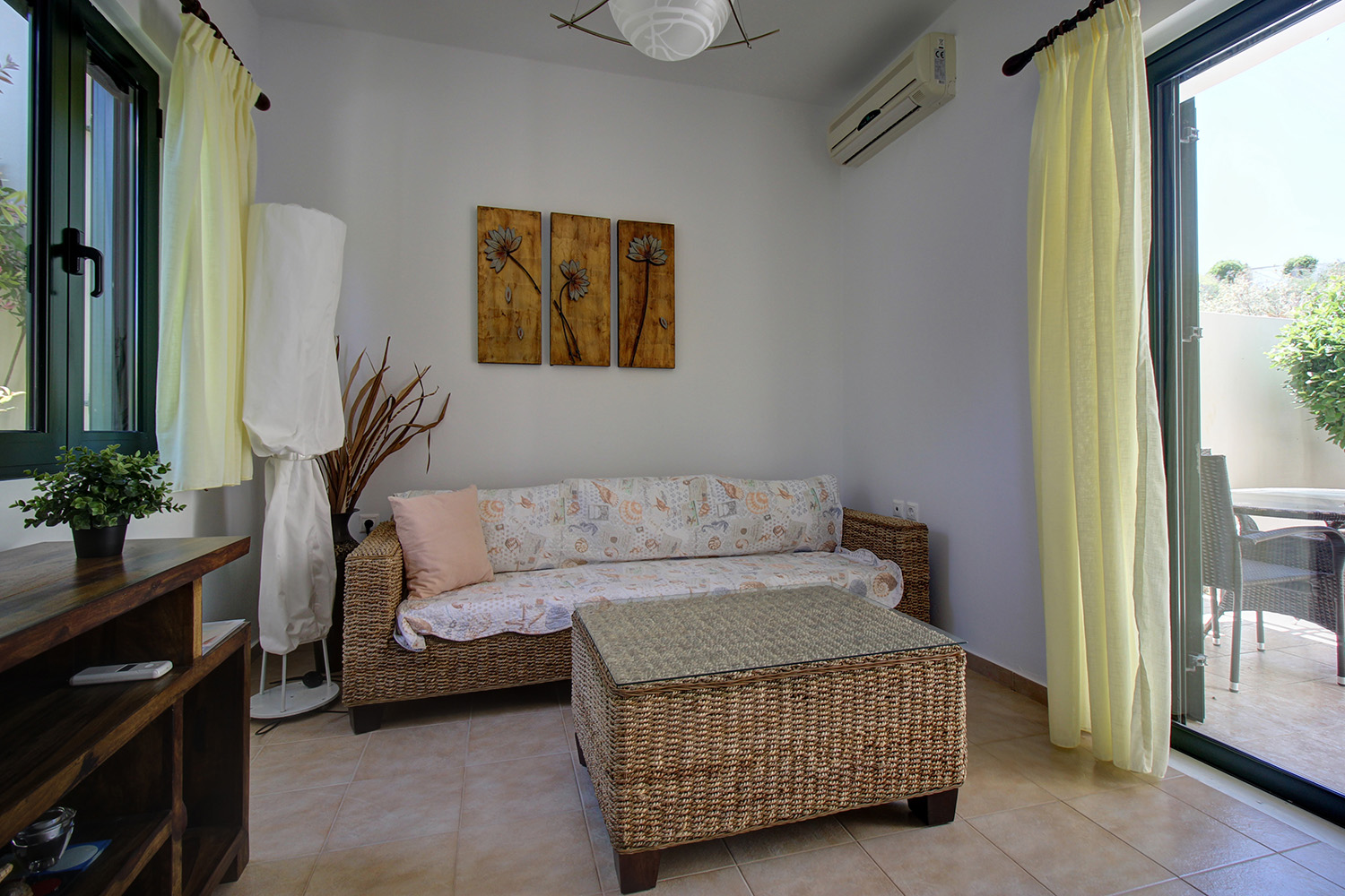 Die Residenz ist in ausgezeichnetem Zustand und ist eine sehr gute Wahl als Landresidenz. Die Gegend ist grün und der Komplex befindet sich an einem ruhigen Ort am Rande des Dorfes, wo nur wenige Autos vorbeifahren und man nur die Geräusche der Natur hört. Innerhalb von 10 Autominuten erreichen Sie die kleine Stadt Vamos und das Küstendorf Georgioupolis, wo Sie alle Arten von Geschäften und Dienstleistungen finden, die Sie für Ihren täglichen Bedarf benötigen. Unter anderem gibt es in Vamos ein öffentliches, kostenloses medizinisches Zentrum, während wir in Georgioupolis einen langen, sandigen Strand mit Bereichen mit Einrichtungen oder ruhigeren Bereichen finden. Die Stadt und der Flughafen von Chania sind etwa 40 bzw. 50 Autominuten entfernt. Die malerische Stadt Rethymnon ist ebenfalls etwa 30 Autominuten entfernt.