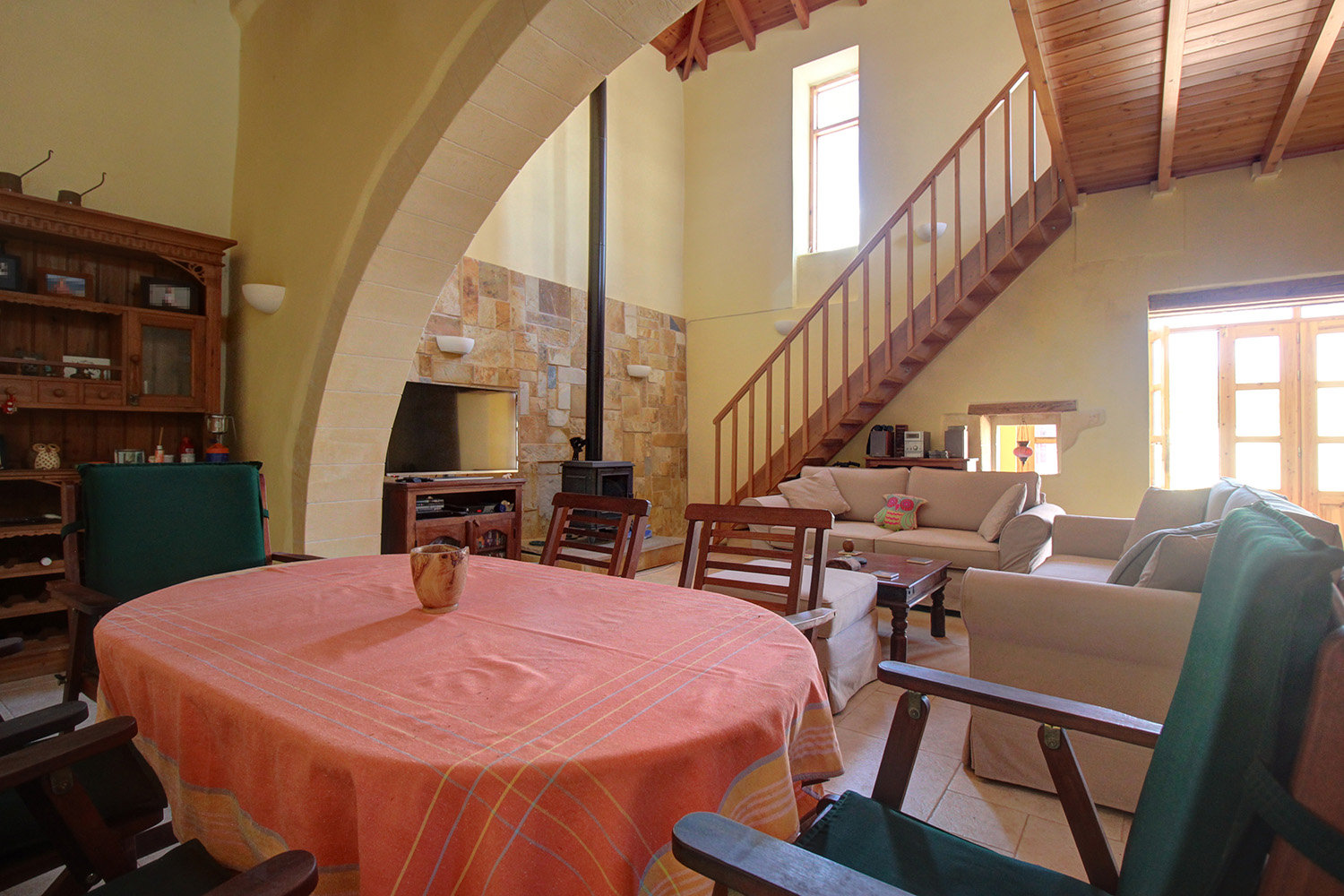 Das Anwesen befindet sich in einem kleinen, malerischen Viertel südlich der Küstenstadt Kolymbari, westlich von Chania. Es handelt sich um ein altes Bauernhaus aus Stein mit einer Mischung aus osmanischen und traditionellen Architekturelementen, das 2002 vollständig restauriert und in seine heutige Form gebracht wurde. Die Residenz befindet sich auf einem 234 m² großen Grundstück und direkt gegenüber befindet sich ein separates Grundstück, auf dem ein wunderschöner 565 m² großer Garten angelegt wurde. Die Residenz ist über eine Sackgasse erreichbar, was Ruhe und Frieden gewährleistet.