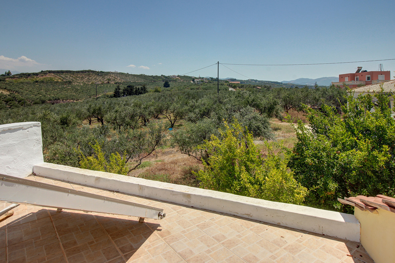 Das Hausgrundstück ist von einer hohen Mauer umgeben und bietet absolute Privatsphäre. Das Gebäude befindet sich auf der Rückseite des Grundstücks, sodass an der Vorderseite ein geräumiger, geschlossener Innenhof entsteht. Eine Außentreppe führt zu einem großen Balkon im Obergeschoss, der einen beeindruckenden Blick auf die umliegenden Olivenhaine und direkt auf das Meer bietet. Der Garten befindet sich direkt außerhalb der Residenz. Die Ruinen eines alten Lagerhauses sind noch vorhanden und ein kleiner Weg schlängelt sich durch den Garten. Der Garten bietet eine Vielzahl von Zierpflanzen, hauptsächlich Sukkulenten und einheimische Arten, die nur minimal gegossen werden müssen. Darüber hinaus gibt es verschiedene ausgewachsene Obstbäume, die mit ein wenig Pflege ertragreich gemacht werden können.