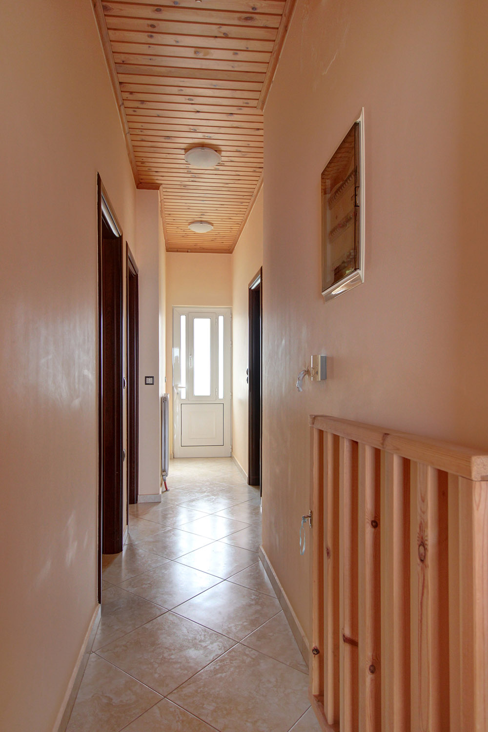 Das Obergeschoss ist über eine Außentreppe erreichbar und vor dem Eingang befindet sich eine große, überdachte Terrasse mit Aussicht. Über die Treppe gelangt man weiter zur Dachterrasse, die noch nicht umgebaut ist, aber Platz für einen externen Wohnraum bietet oder in Zukunft zu einer schönen Liegewiese werden kann. Auf der Etage finden wir einen offenen Wohn-, Ess- und Küchenbereich, während ein Flur nach hinten zu einem zentralen Badezimmer und drei Schlafzimmern führt. Jedes Schlafzimmer verfügt über einen Einbauschrank und Ausgang zum großen Balkon, der sich um die gesamte Etage erstreckt. Die Residenz verfügt über eine Solaranlage, eine Zentralheizung mit Heizkörpern und Ölkessel, eine Klimaanlage sowie Aluminiumfenster und -türen mit Fliegengittern und Doppelverglasung.
