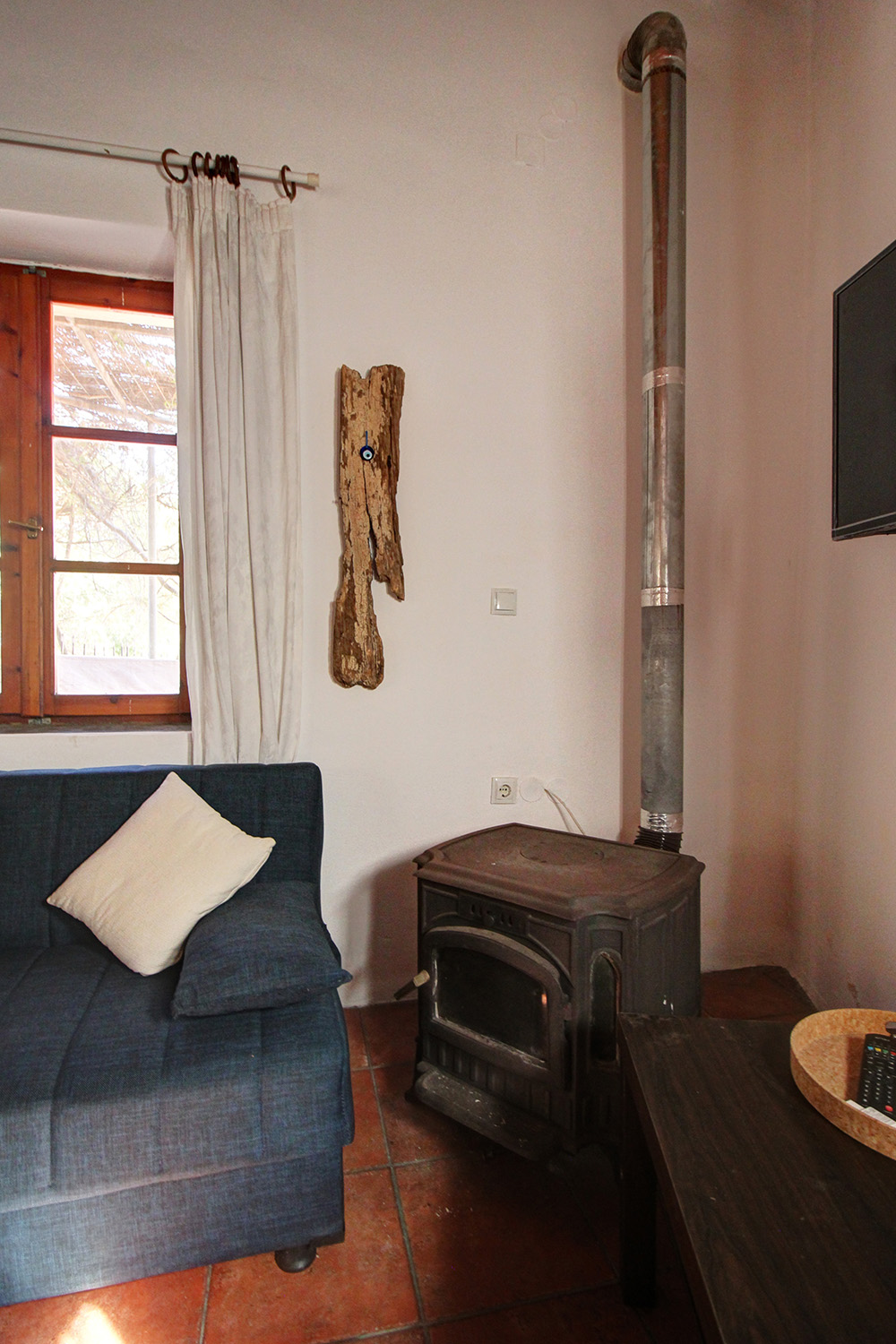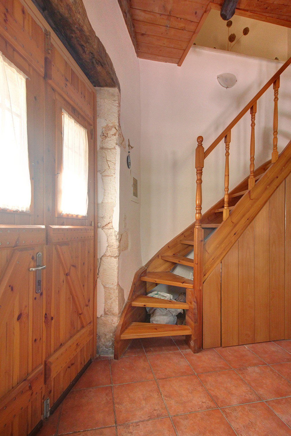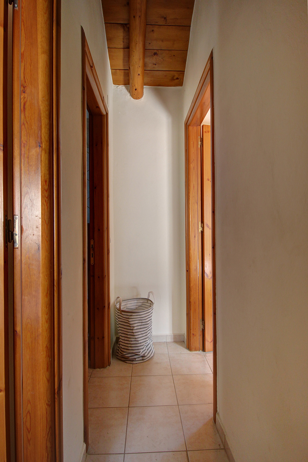Das Gebäude verfügt über zwei nutzbare Innenhöfe: einen nördlich an der Vorderseite vor dem Haupteingang und einen südlich mit Zugang von der Seite des Gebäudes. Diese beiden Außenbereiche bieten ausreichend Platz, um Ihren Kaffee oder Ihre Mahlzeit im Freien zu genießen, sind pflegeleicht und besonders praktisch, wenn Sie das Anwesen saisonal nutzen. Das Erdgeschoss besteht aus einem offenen Wohn-, Ess- und Küchenbereich. Eine traditionelle Holztreppe führt in den ersten Stock zu den beiden Schlafzimmern und dem Badezimmer. Alle Zimmer sind klimatisiert, und da das Gebäude hauptsächlich nach Südosten ausgerichtet ist, sind alle Räume lichtdurchflutet. Der Verkaufspreis beinhaltet alle vorhandenen Möbel und Elektrogeräte.