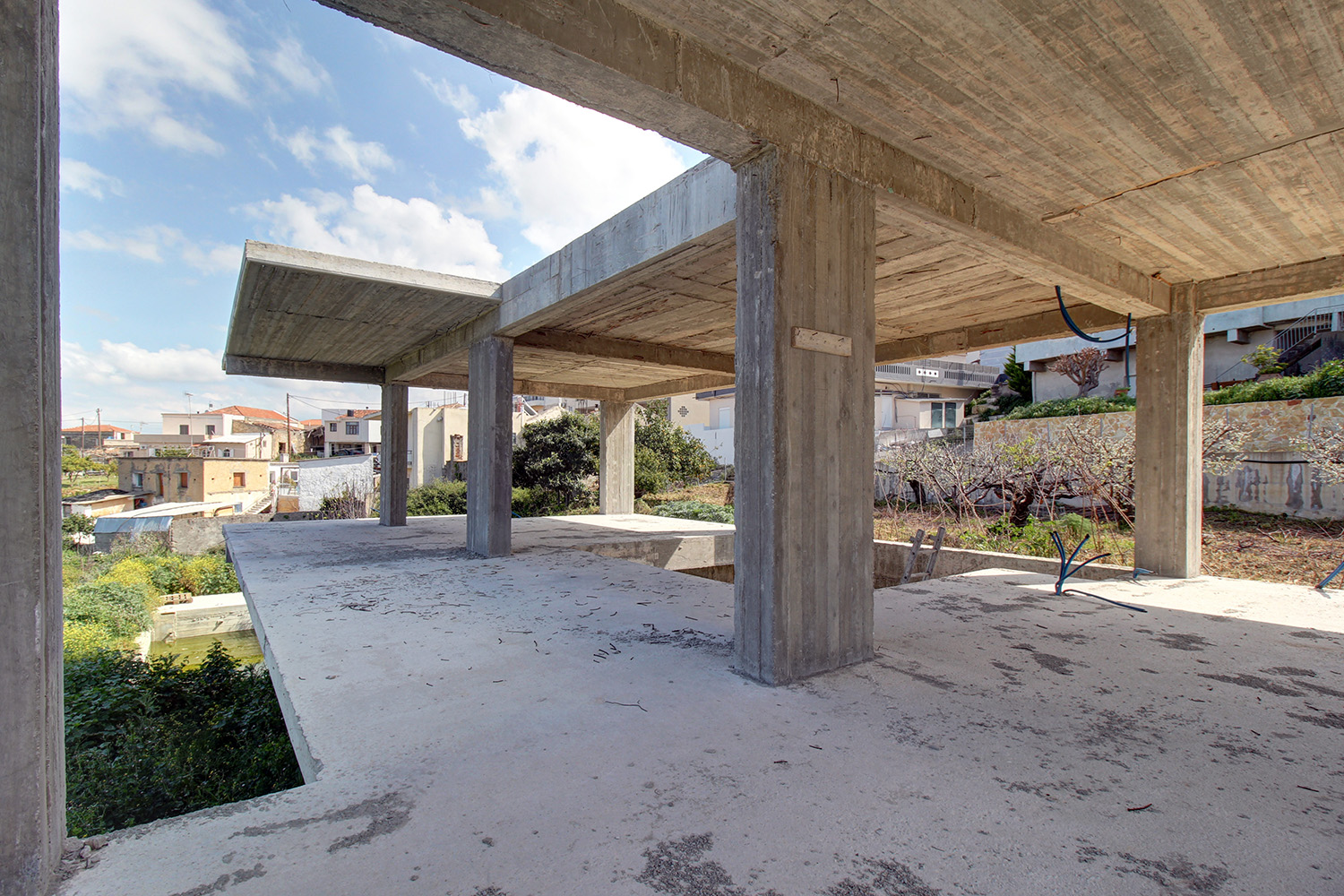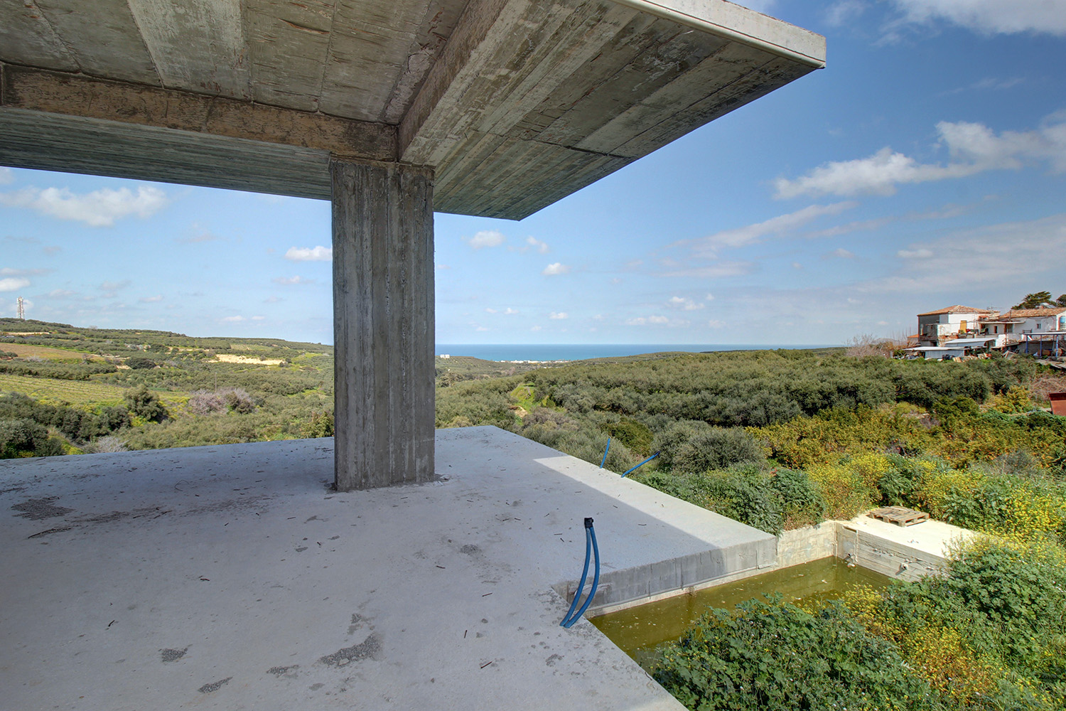 Das Anwesen befindet sich in einem malerischen Dorf der Gemeinde Platanias. Es ist im Rohbau und steht im aktuellen Zustand zum Verkauf. Das Haus liegt am Dorfrand an einem Hang und bietet einen Panoramablick über die endlosen Olivenhaine der Umgebung bis hin zum Meer. Das steile Gelände ermöglicht diese Aussicht, während das Grundstück durch hohe Mauern so gestaltet wurde, dass das gesamte Gelände um das Haus eben ist.