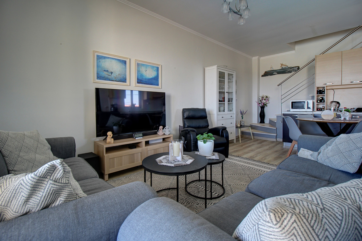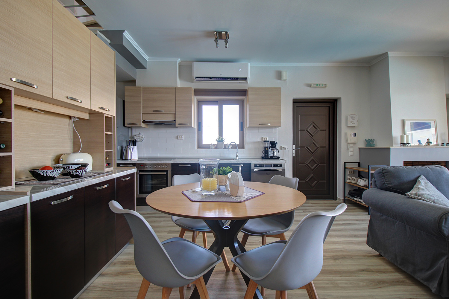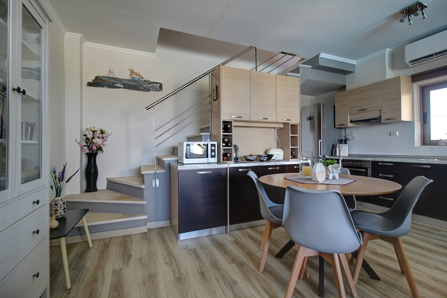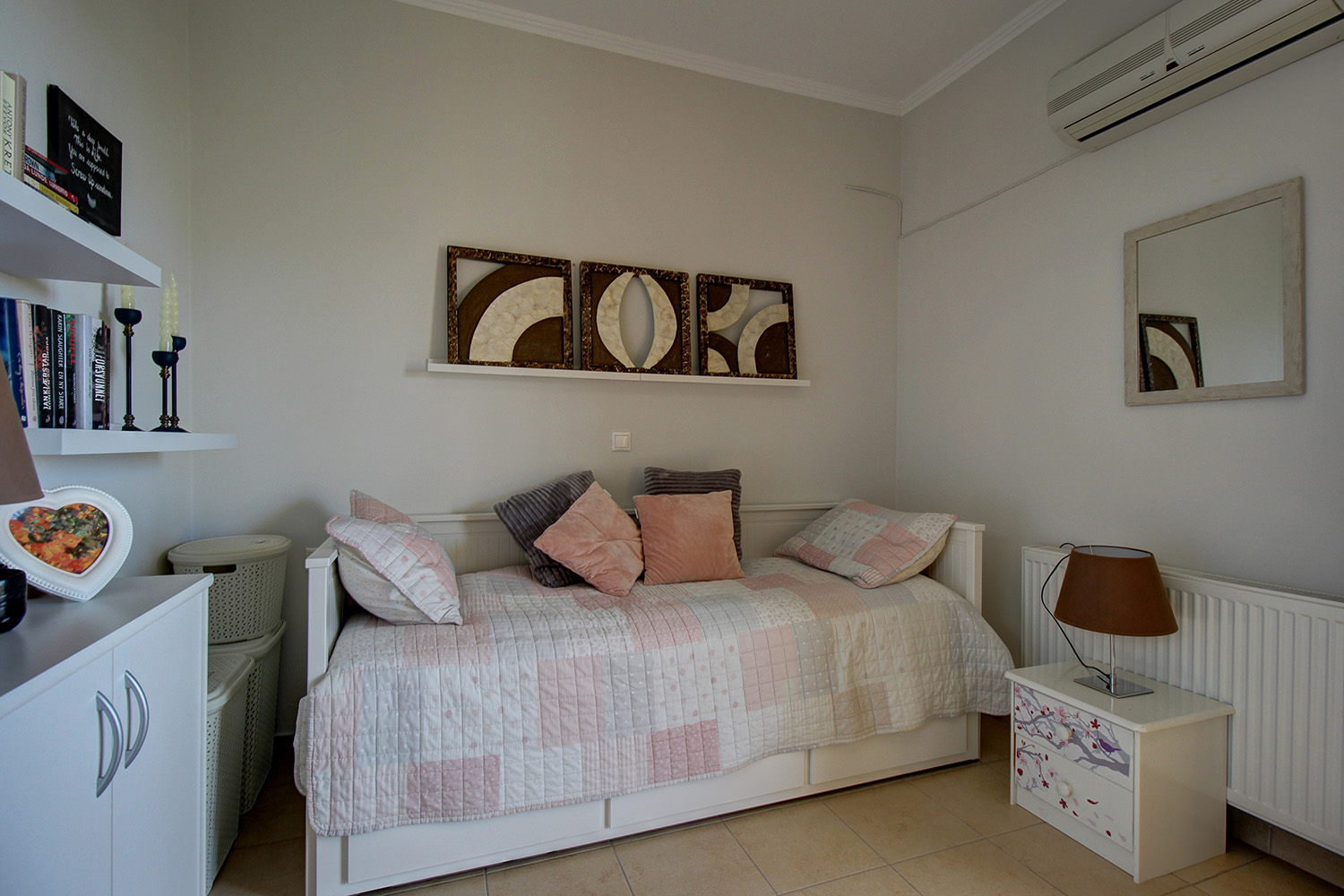 Die Residenz ist in zwei unabhängige Einheiten aufgeteilt. Das Erdgeschoss und das Obergeschoss umfassen eine 89 m² große Maisonette-Wohnung, während das Untergeschoss als 55 m² großes Gästeapartment genutzt wird. Das Gästeapartment verfügt über einen separaten Eingang von der Vorderseite des Komplexes und ist komplett offen gestaltet. Es verfügt über ein eigenes Bad, einen Wohnbereich und eine Küche und bietet Platz für bis zu vier Personen. Dieser Raum kann für touristische oder Langzeitmieten oder auf Wunsch als zusätzlicher Wohnraum genutzt werden. Es ist an die Zentralheizung angeschlossen, verfügt über eine Klimaanlage und eine Sicherheitstür.