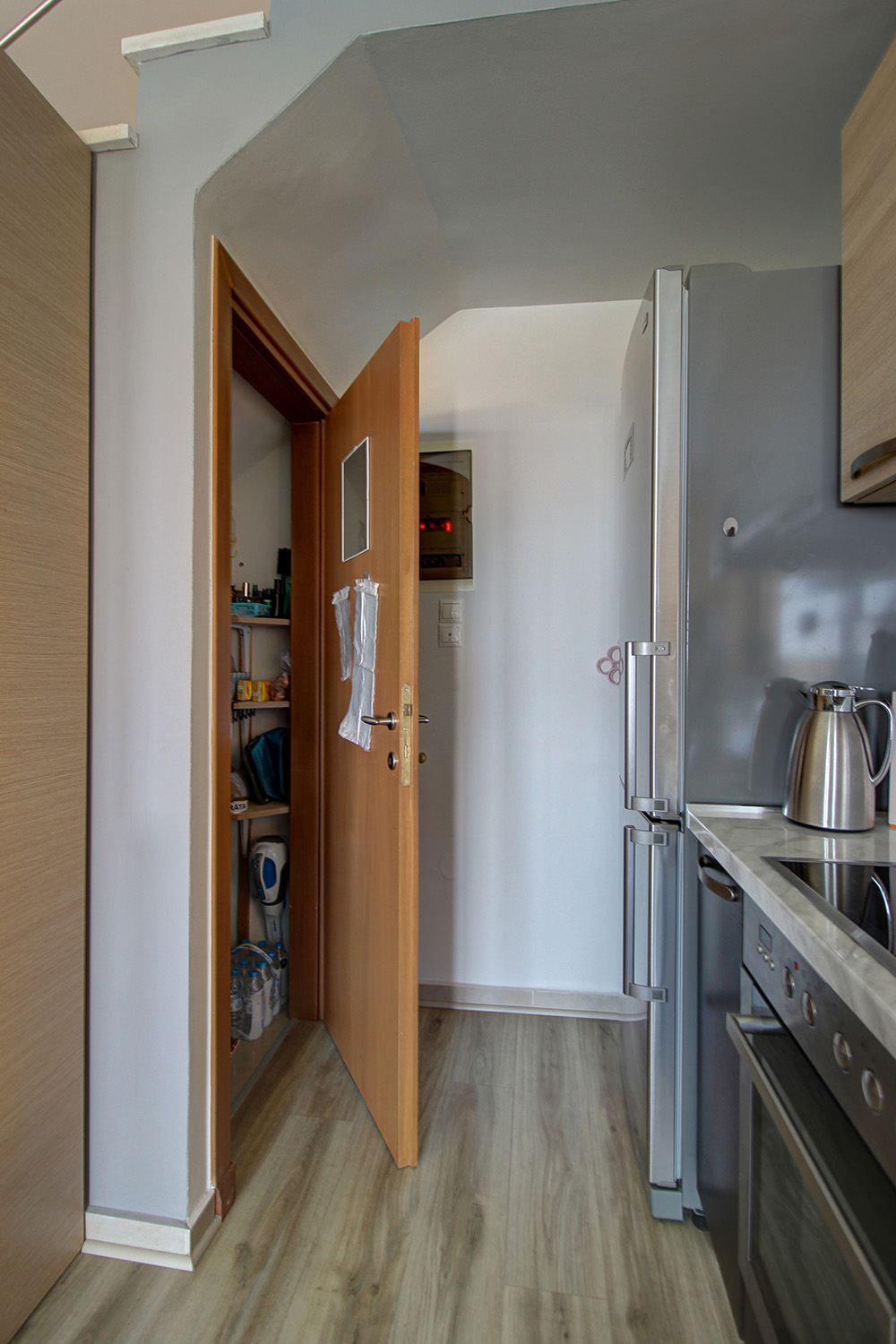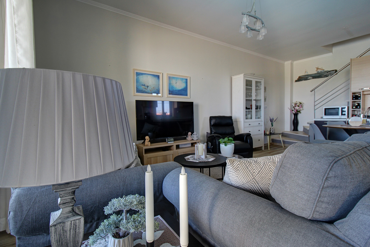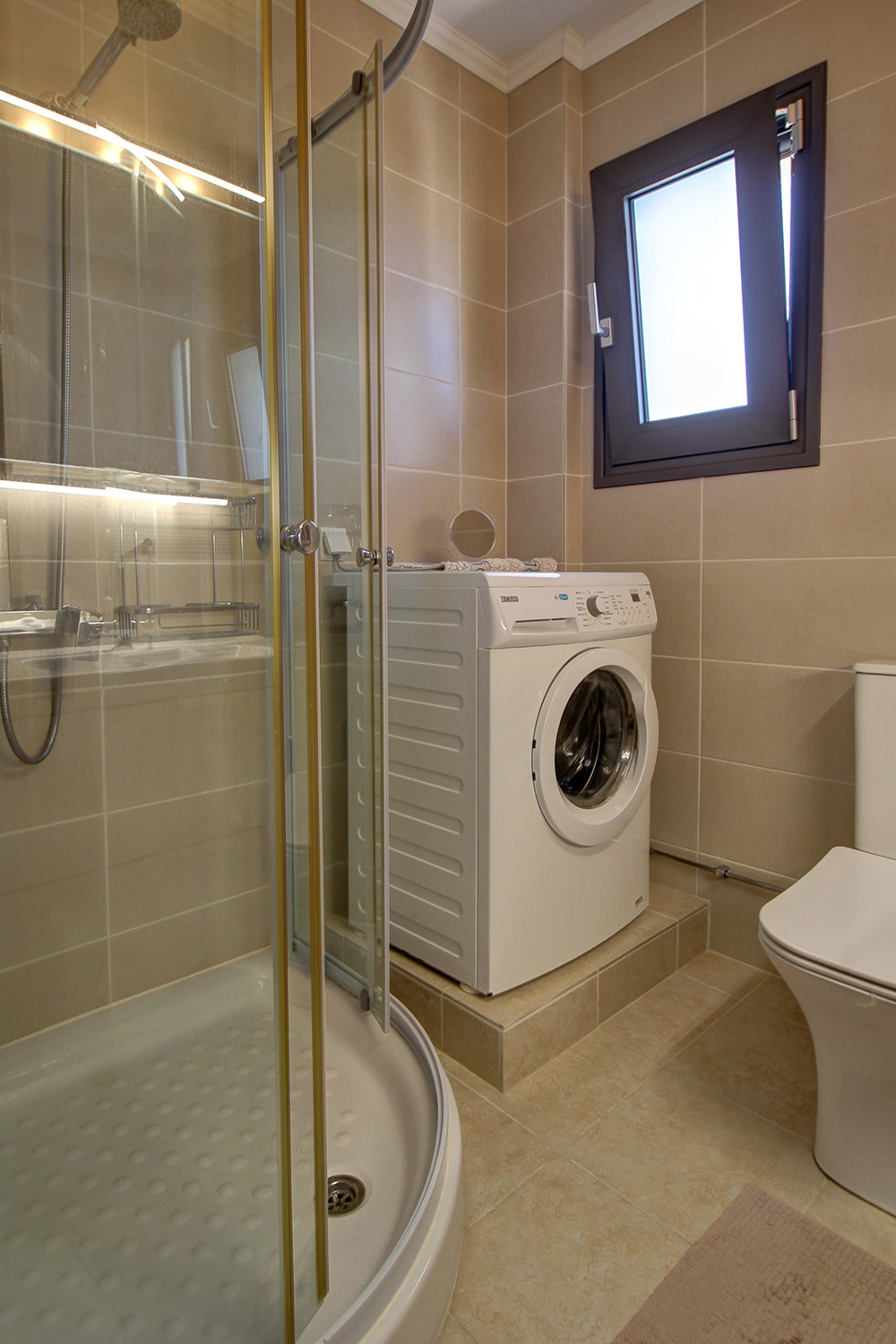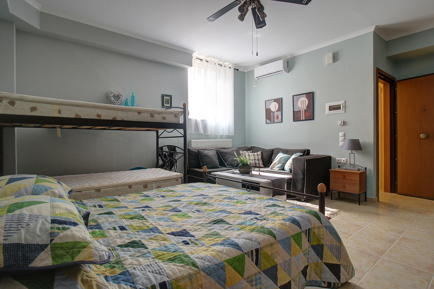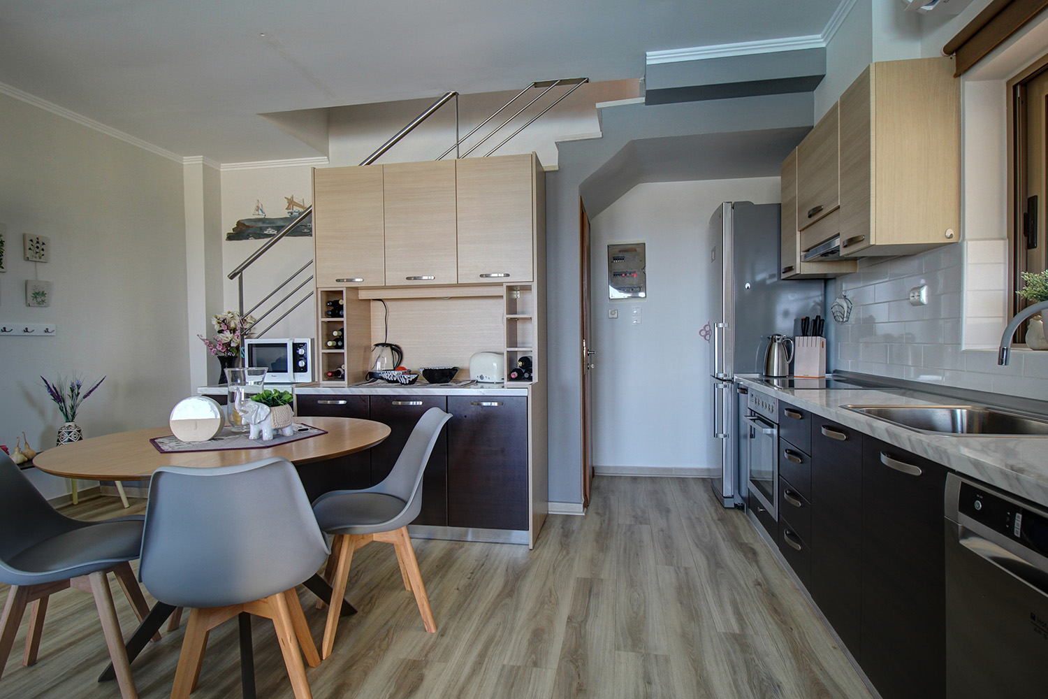 Die Residenz ist in zwei unabhängige Einheiten aufgeteilt. Das Erdgeschoss und das Obergeschoss umfassen eine 89 m² große Maisonette-Wohnung, während das Untergeschoss als 55 m² großes Gästeapartment genutzt wird. Das Gästeapartment verfügt über einen separaten Eingang von der Vorderseite des Komplexes und ist komplett offen gestaltet. Es verfügt über ein eigenes Bad, einen Wohnbereich und eine Küche und bietet Platz für bis zu vier Personen. Dieser Raum kann für touristische oder Langzeitmieten oder auf Wunsch als zusätzlicher Wohnraum genutzt werden. Es ist an die Zentralheizung angeschlossen, verfügt über eine Klimaanlage und eine Sicherheitstür.
