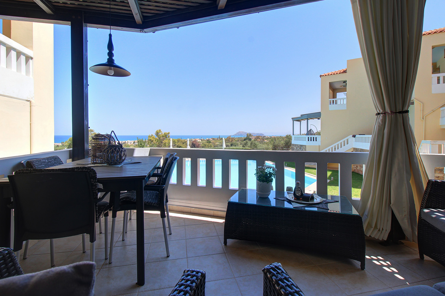 IN EINER WOHNANLAGE MIT BLICK AUF DAS MEER