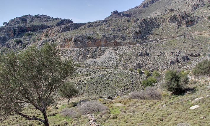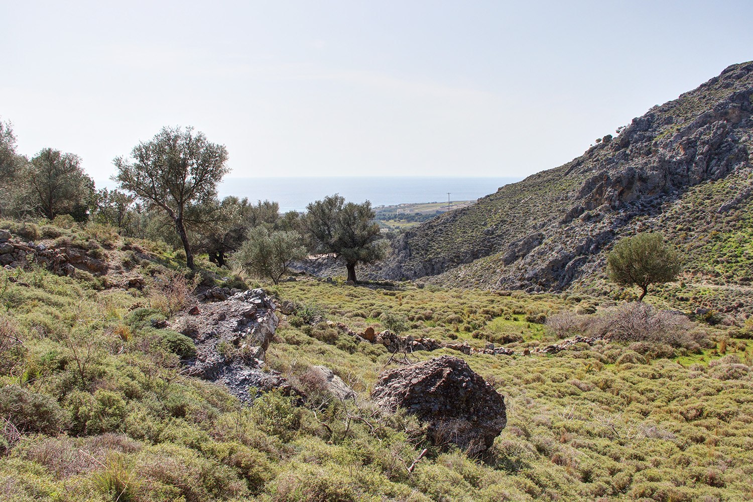 The property is located about 5 minutes north from the village and the beach of Frangokastello and within walking distance from the village Patsianos in the municipality of Sfakia. It is a buildable plot, which has easy access from an asphalt road and is on a hillside with southwest orientation, from where it offers unobstructed views of the sea and over an impressive gorge. The ground has a gentle slope, which allows any construction and there are about 50 productive olive trees, many of which are century-old.