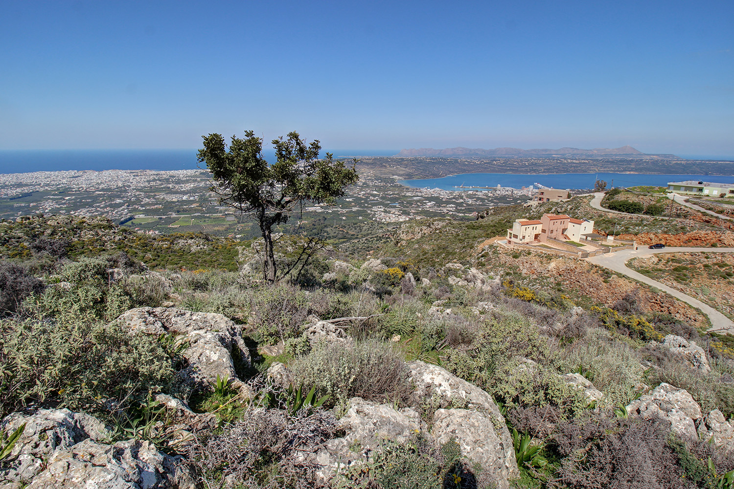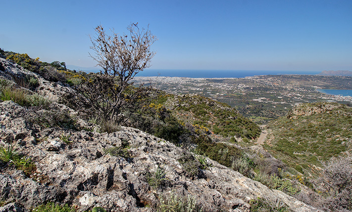 The property is located on a hillside with north orientation, in an area with easy access a few meters from the provincial road to Chania-Malaxas. It is a buildable plot with unobstructed views from all areas to the sea and over the city of Chania. The ground is rocky with low wild vegetation and there are two opposite frontages with lengths of 17 m at the highest level and 53 m at the lowest.