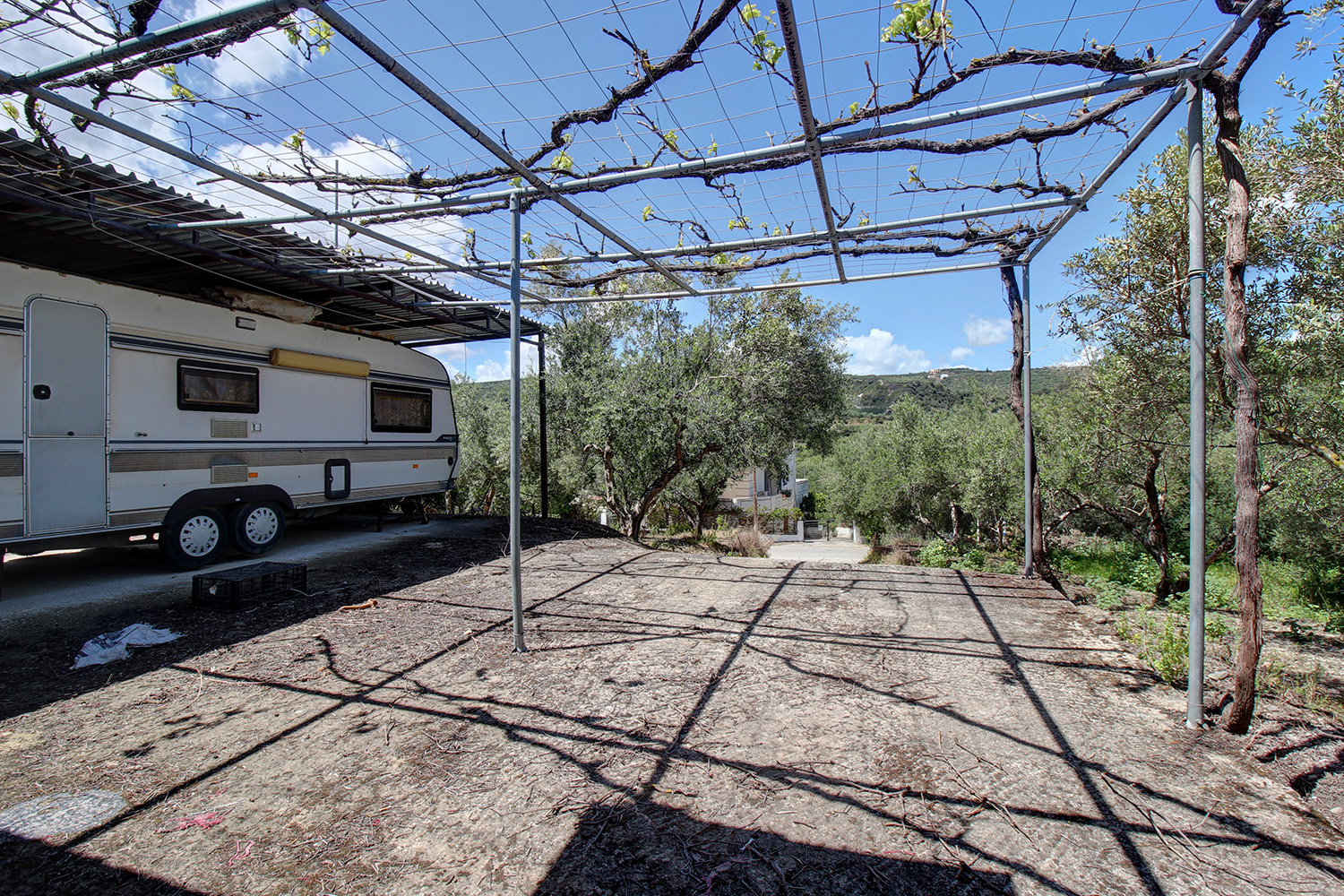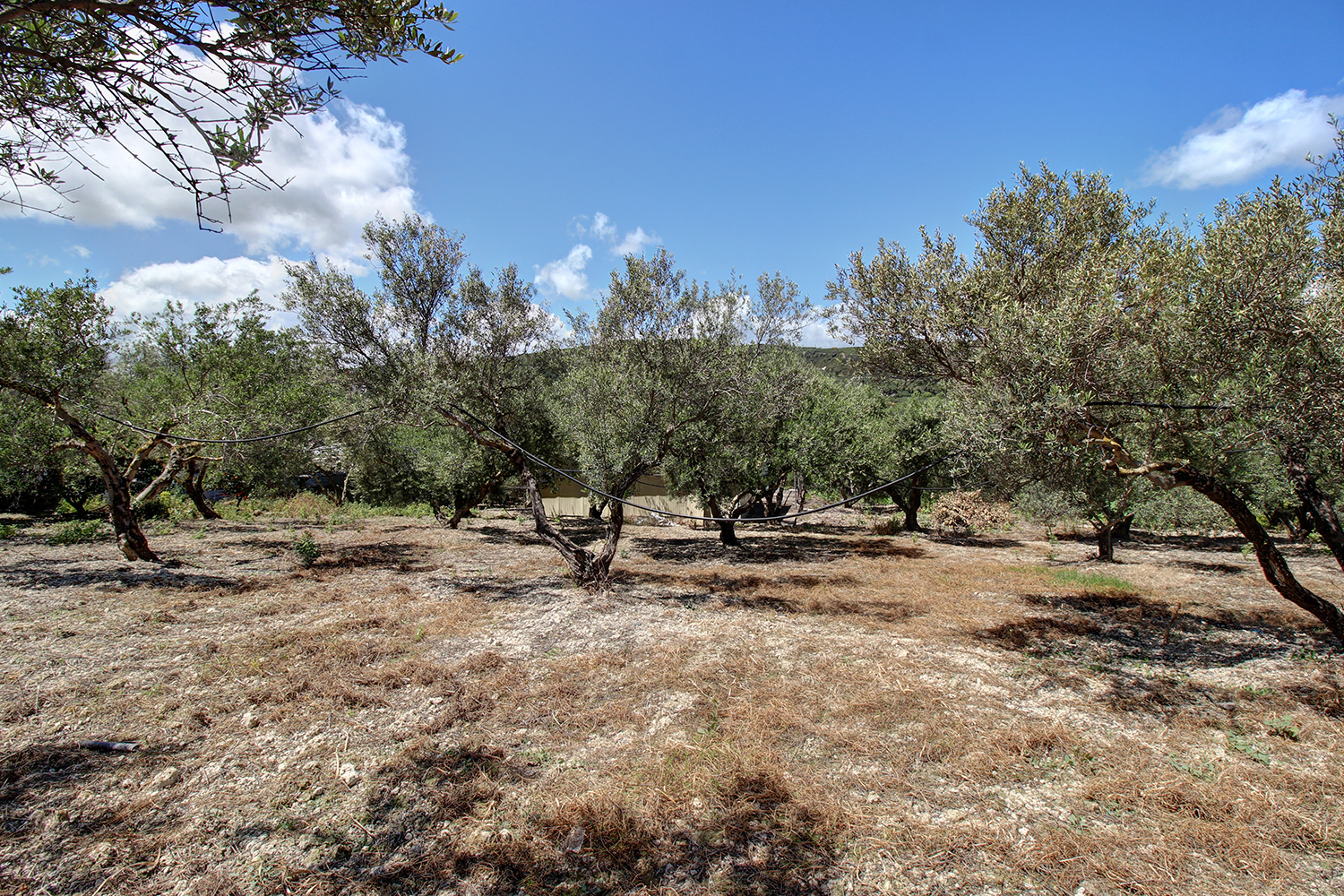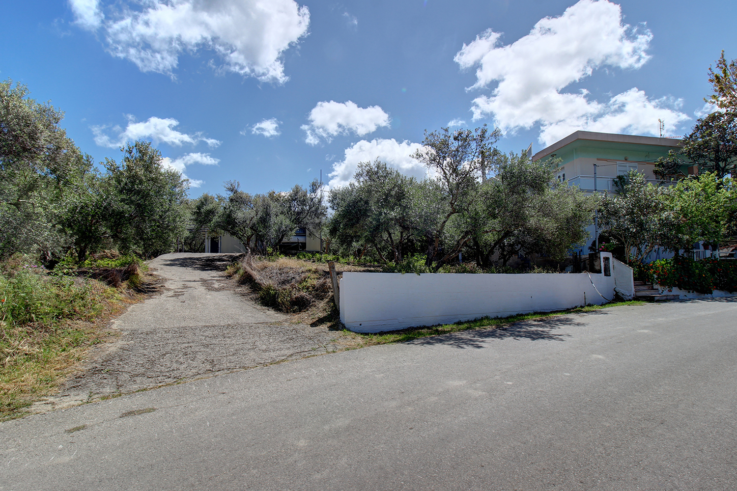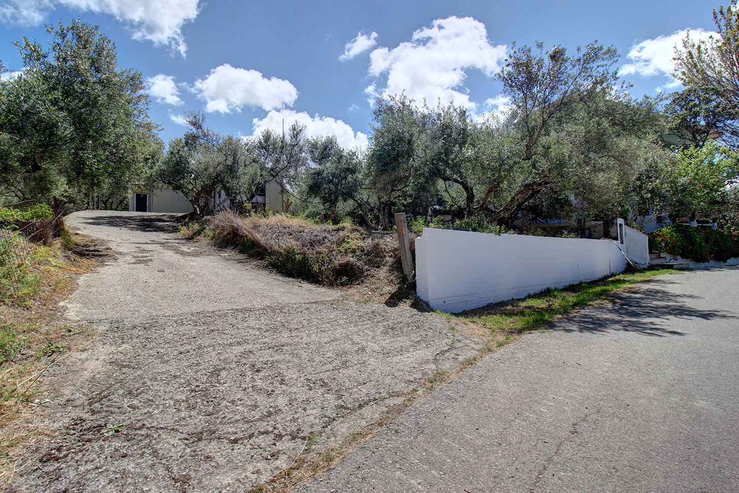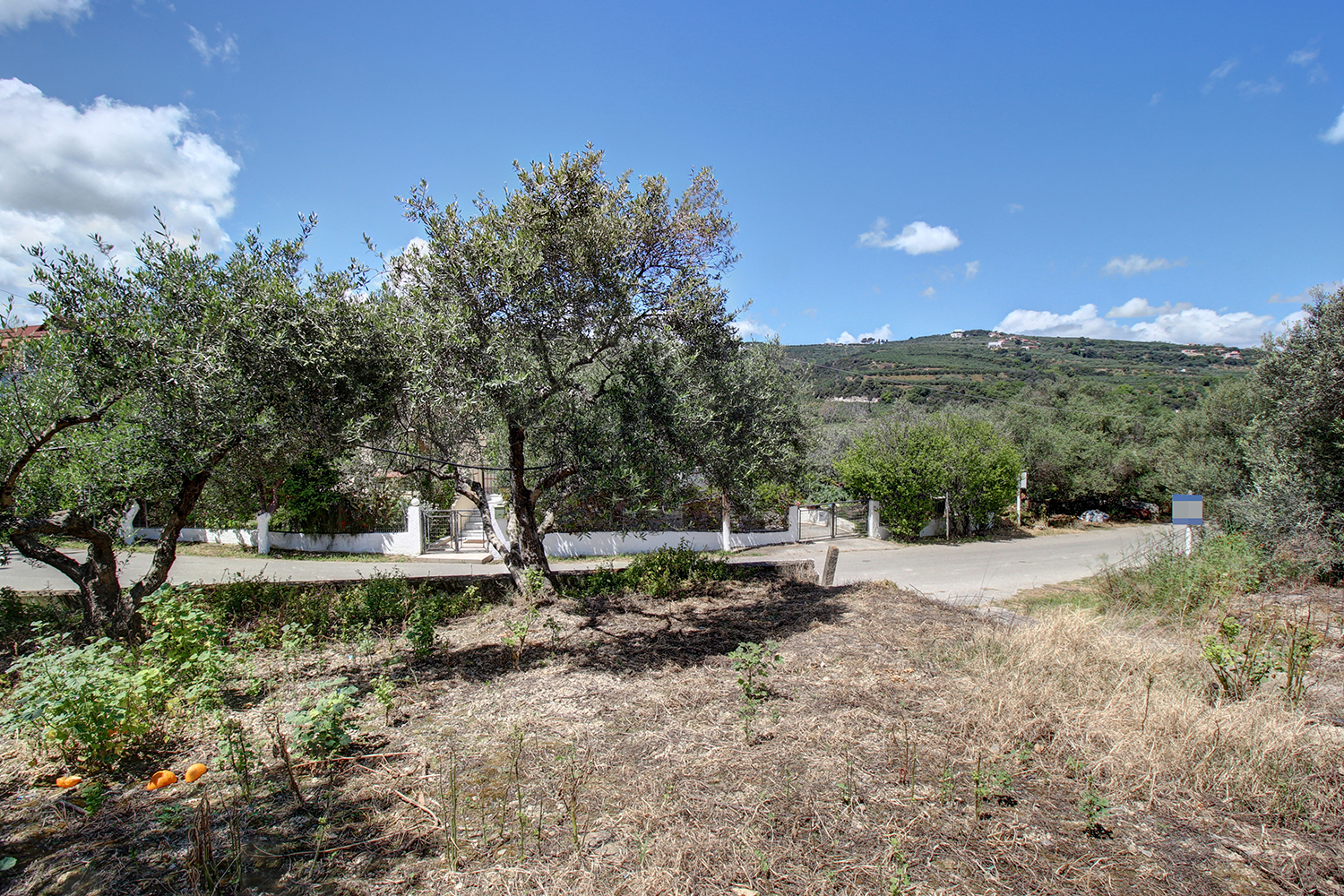 The plot is on a hillside with western orientation and gentle slope. There are about 45 mature olive trees on the property as well as a prefabricated building, which is not included in the sale. There are two opposite frontages. One is 20 m long on an asphalt road, at the lowest level and the other 38 m on a rural dirt road, at the highest area. The plot is at the edge of the village and has beautiful views over the plain of the river Tavronitis and up to the sea. It is mainly suitable for professional use as it allows you to build a small residential complex of up to 880 m².