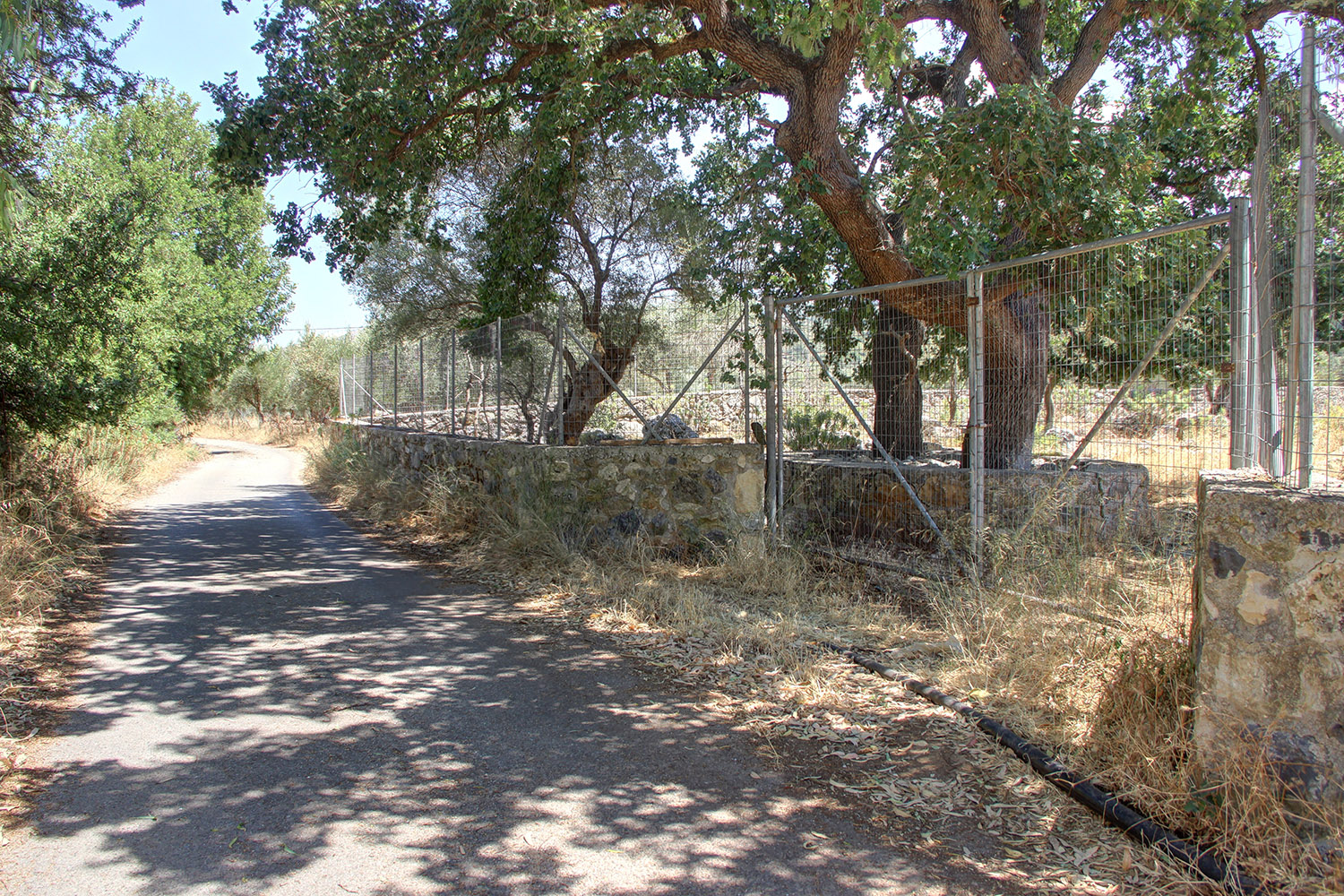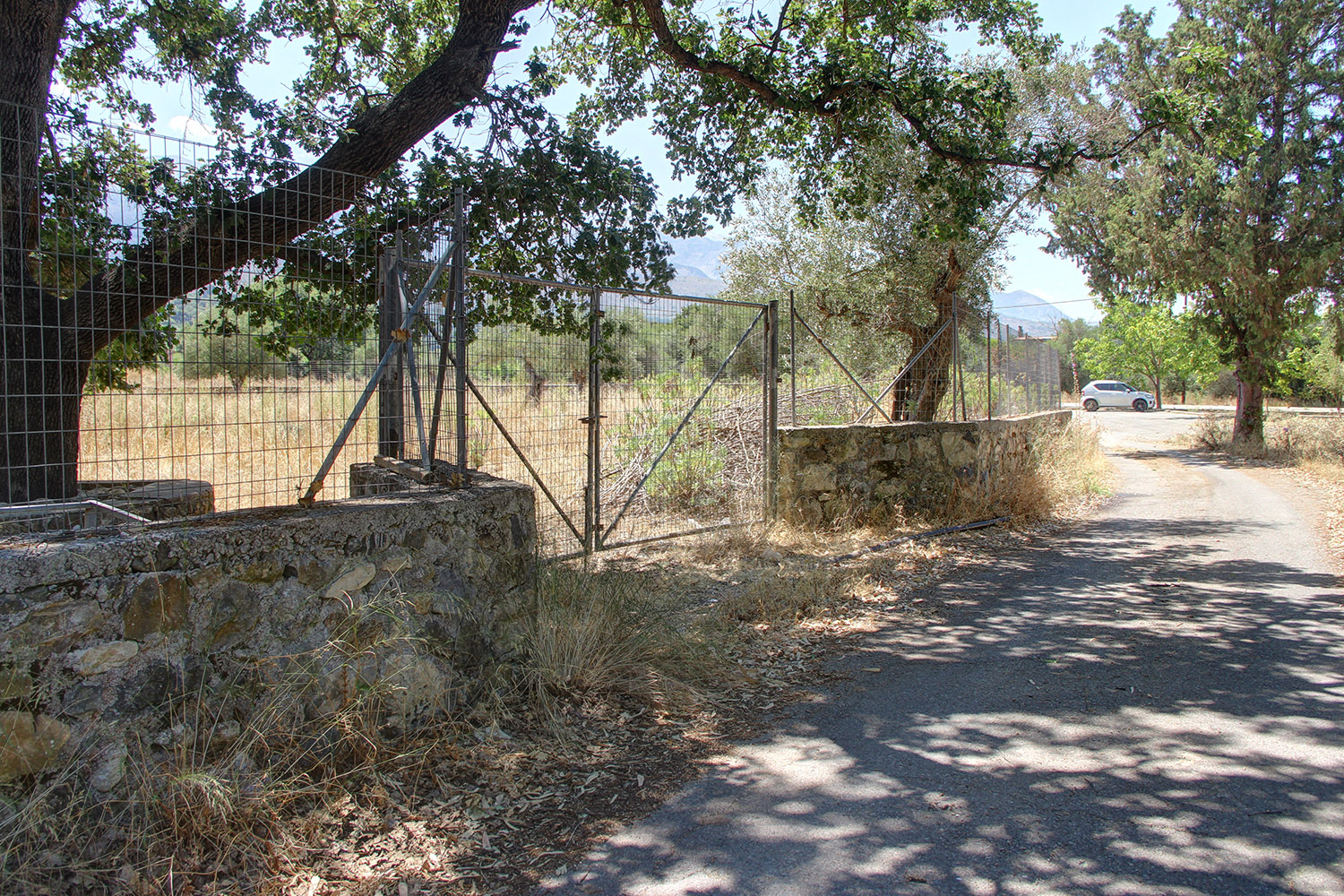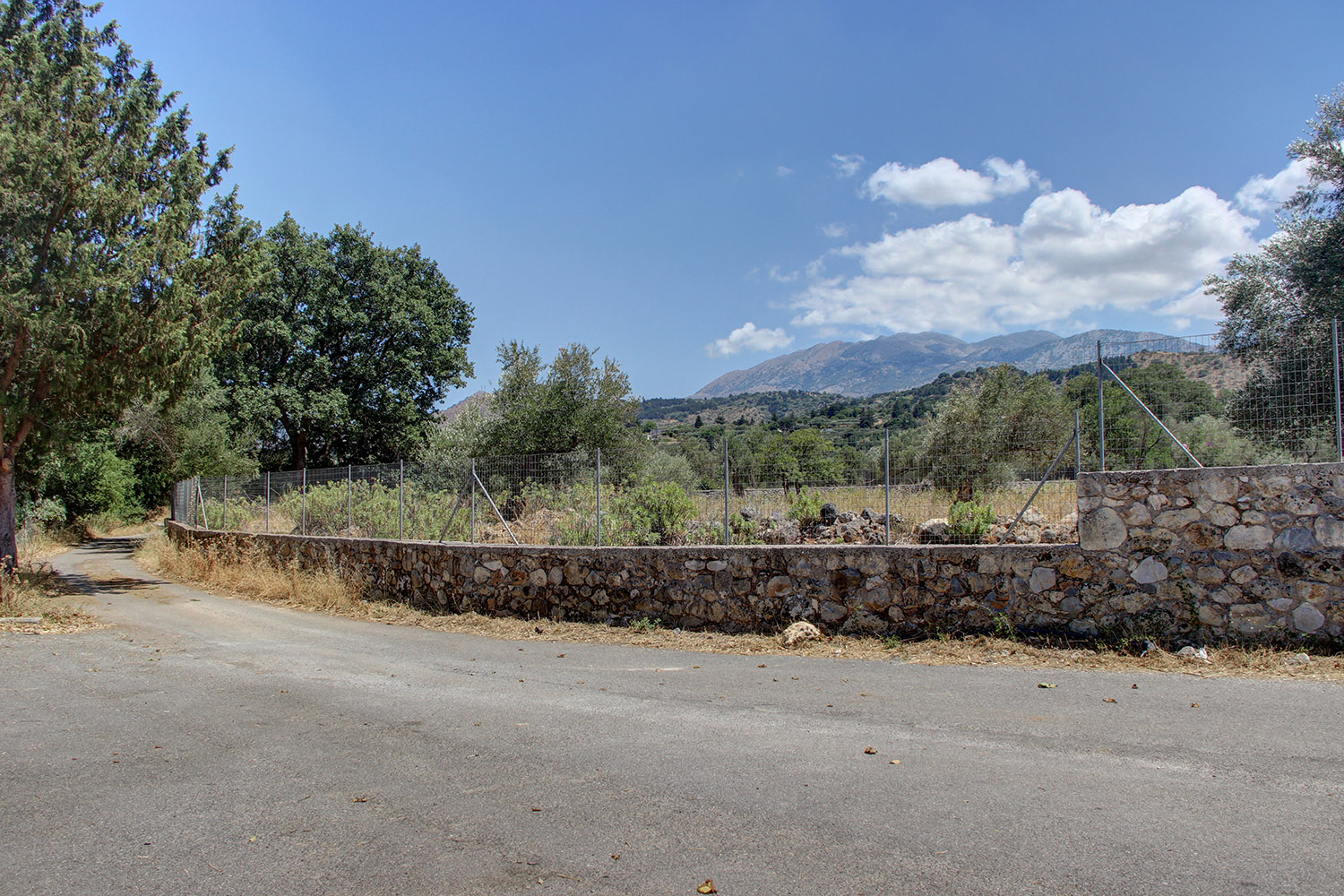 The property is just outside the small town Vryses, in the municipality Apokoronas east from Chania city. It is a buildable plot, on which there are about 10 mature olive trees and some big oak trees. The ground is flat with frontage on the north side and a good, almost rectangular shape. The entire area is fenced with a stone wall and a high metal fence. From all areas the views are excellent to the White Mountains and the surrounding verdant hills. An asphalt road reaches the property and there is direct access to public utilities.