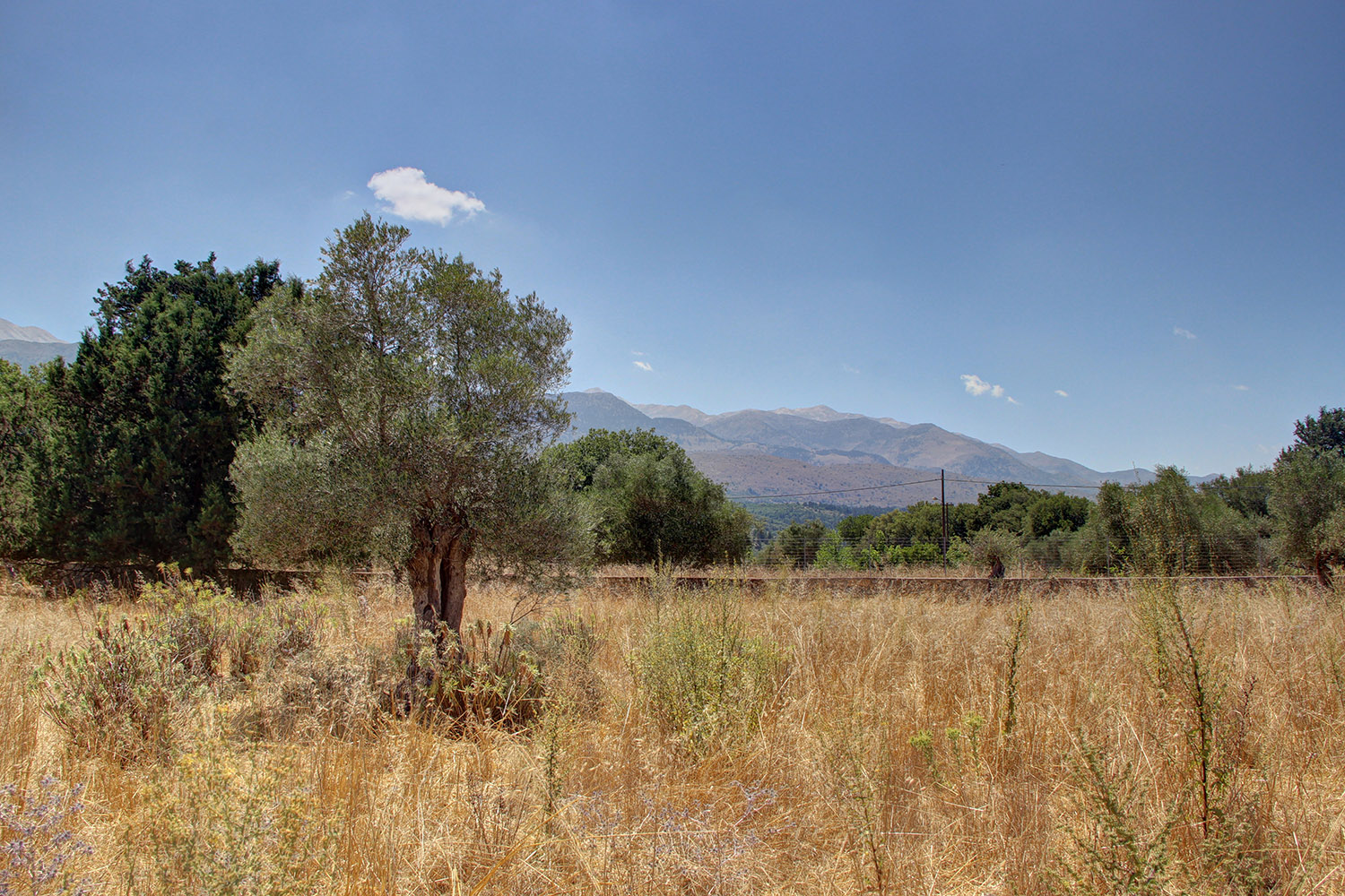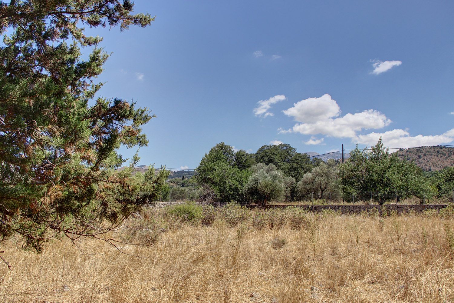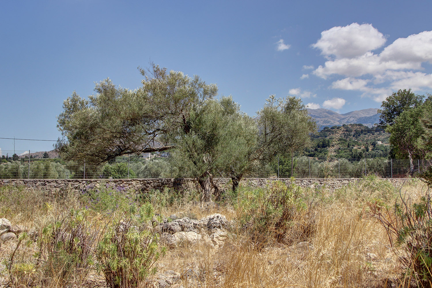 The property is just outside the small town Vryses, in the municipality Apokoronas east from Chania city. It is a buildable plot, on which there are about 10 mature olive trees and some big oak trees. The ground is flat with frontage on the north side and a good, almost rectangular shape. The entire area is fenced with a stone wall and a high metal fence. From all areas the views are excellent to the White Mountains and the surrounding verdant hills. An asphalt road reaches the property and there is direct access to public utilities.