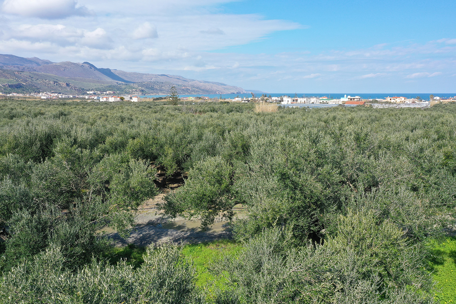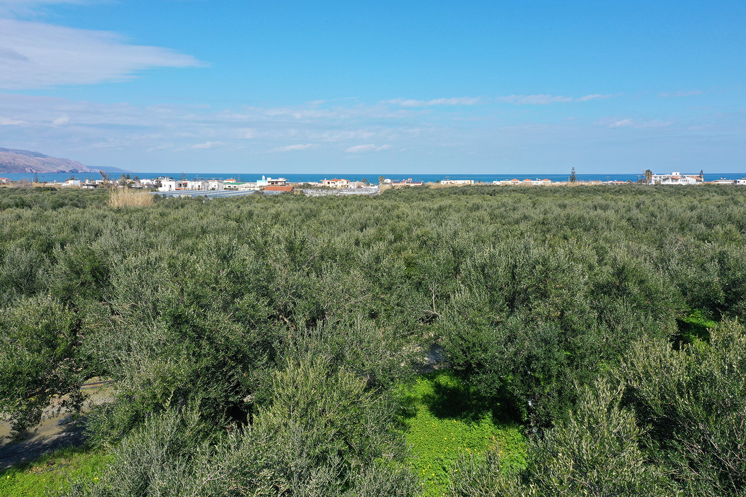 The plot is between the villages Tavronitis and Kolymbari, south from the old highway to Chania-Kissamos. It is located in an area that is surrounded by countless olive groves. If you build an upper floor, you will have beautiful views up to the sea and the verdant surrounding area. The ground is flat and there are about 40 big and productive olive trees. The shape of the plot is triangular and on the north side there is a frontage on a passable dirt road of 76 m long. The purchase of the plot is suitable for the construction of a luxury villa or 2 smaller ones with independent, large outdoor spaces.
