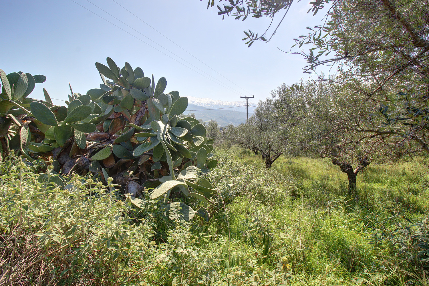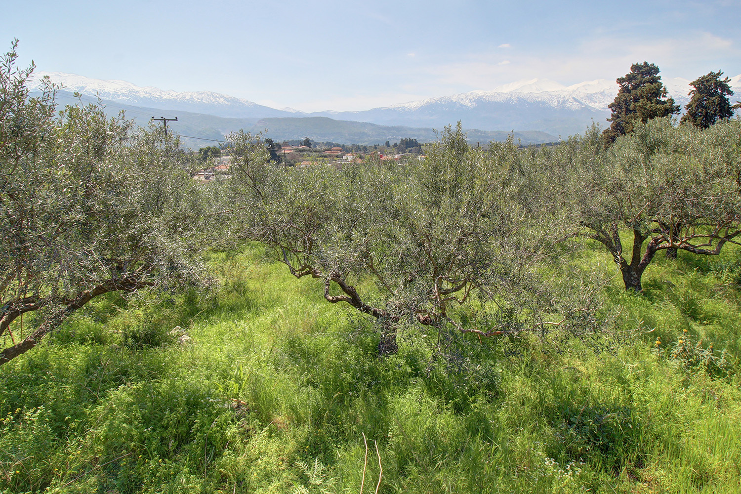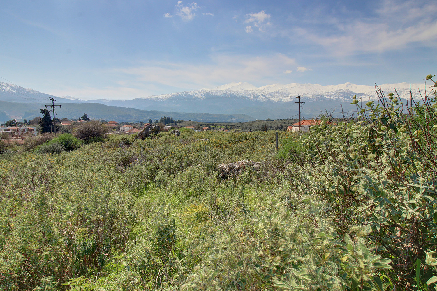 The property is located in a beautiful village of Apokoronas, between Vamos and Georgioupolis. It is a good-sized plot with a slight southern slope. The frontage is on an asphalt road on the highest, north side while to the south the views are unobstructed and impressive to the White Mountains. About half of the plot is bare while on the rest there are 28 mature and productive olive trees. The property is a very good investment as it allows you to build a small residential complex with spacious outdoor areas and views, in a picturesque village.