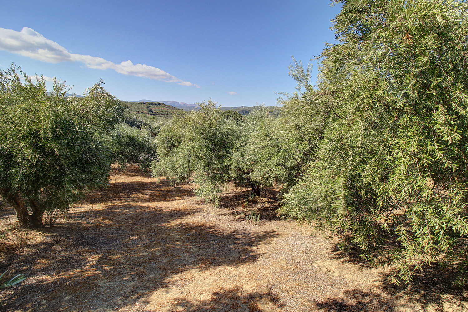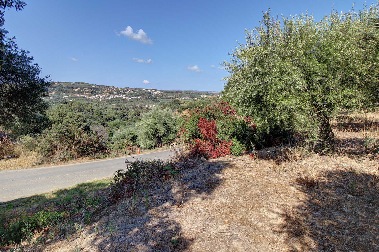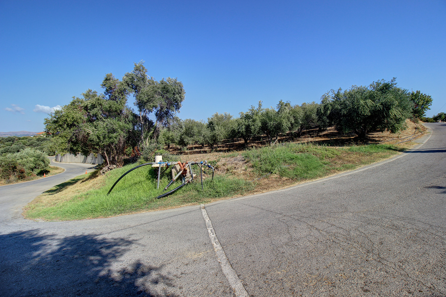 The plot is between the villages of Maleme and Vlacheronitissa. It is located in a sparsely-built area and is surrounded mainly by olive groves. It is a plot, for which a building permit is under issue and is included in the sale price for the construction of a ground-floor residence of 190 m² with a basement of 95 m² and a swimming pool of 55 m². The plot is almost rectangular and has a large frontage on an asphalt road. The land has a gentle southeast slope with frontages at the lowest points and there are approximately 80 mature and productive olive trees. The goal of the existing architectural study is to make as few modifications as possible to the form and the features of the plot as well as the maximum possible preservation of the existing olive grove. In any case, the plot grants guaranteed buildability and allows you to alter the permit and construct anything you wish in the future.