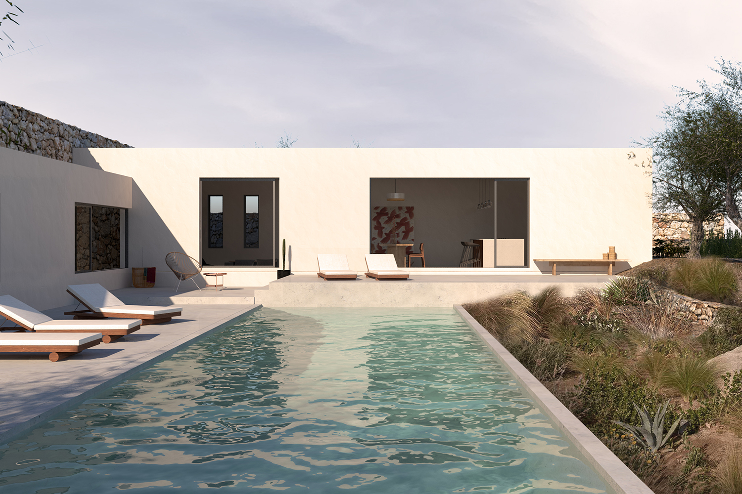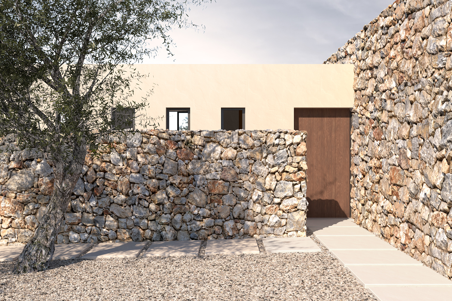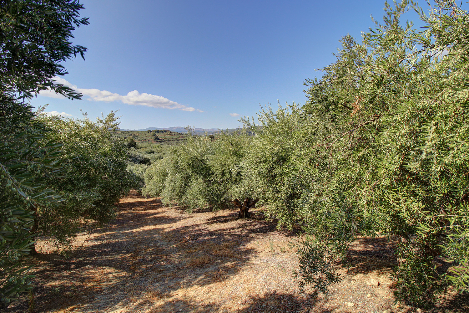 The plot is between the villages of Maleme and Vlacheronitissa. It is located in a sparsely-built area and is surrounded mainly by olive groves. It is a plot, for which a building permit is under issue and is included in the sale price for the construction of a ground-floor residence of 190 m² with a basement of 95 m² and a swimming pool of 55 m². The plot is almost rectangular and has a large frontage on an asphalt road. The land has a gentle southeast slope with frontages at the lowest points and there are approximately 80 mature and productive olive trees. The goal of the existing architectural study is to make as few modifications as possible to the form and the features of the plot as well as the maximum possible preservation of the existing olive grove. In any case, the plot grants guaranteed buildability and allows you to alter the permit and construct anything you wish in the future.