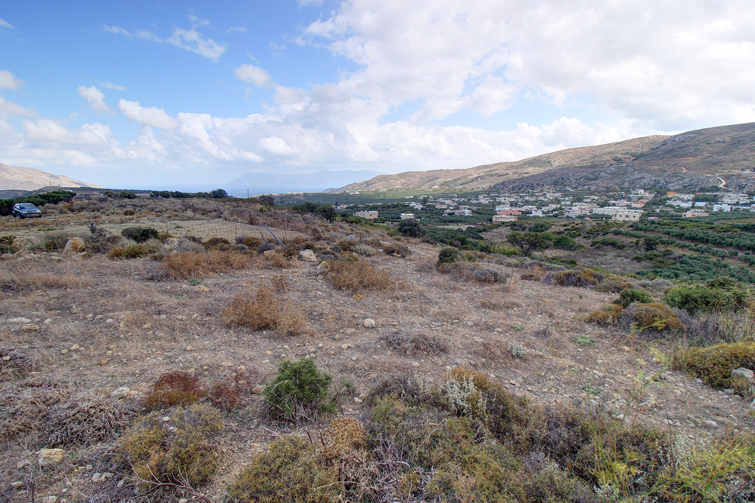 The property is located just outside the village Platanos of the municipality Kissamos, approximately 10 minutes' drive west from the center of the small town Kissamos. It is a buildable plot, which is in the licensing process and available for sale with a ready permit for residence, which can be used as it currently is or may be modified according to your own needs. The frontage is on the ridge, where the ground is almost flat. Towards the back, the property extends down to a hillside with southeast orientation, where the ground is divided into flat terraces. From the highest point there are excellent, unobstructed views over the plain of Falasarna and its famous beach while they will be even more impressive if you construct a building with an upper floor.