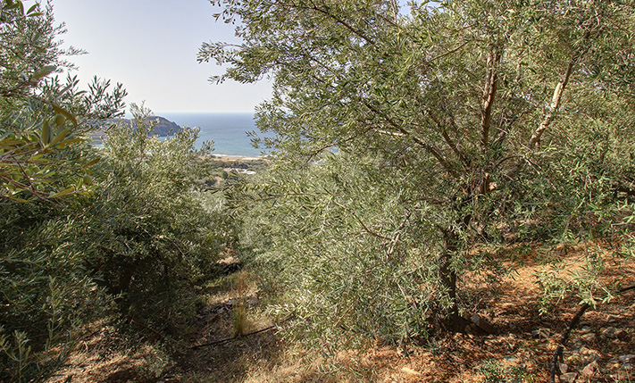 The property is located just outside the village Sfinari of the municipality Kissamos, on a hillside with a western slope from where it has excellent unobstructed views to the sea, over the village and to the wild Cretan landscape of the area but also allows you to enjoy the unique sunset in the sea every night. It is a square plot with frontage on a rural road at its western and lower side. There are about 130 olive trees, which are mature and productive. From all points the views are impressive and the property is suitable for the construction of a luxury residence with large outdoor spaces.