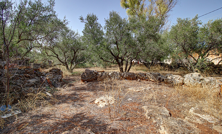 The property is in the village Kokkino Chorio of the municipality Apokoronas. It is a well-shaped plot. The ground is flat and there are about 20 olive trees as well as an old stone threshing floor. Along the north side there is a large frontage on an asphalt road. The plot is corner and has additional frontages to the west as well as to an old path on part of the south side. The features of the plot allow the construction of three or four independent houses with large outdoor space in the exclusive use of each. Alternatively, you can build an apartment complex of up to 400 m² for use or resale or you may simply construct your house in the future.
