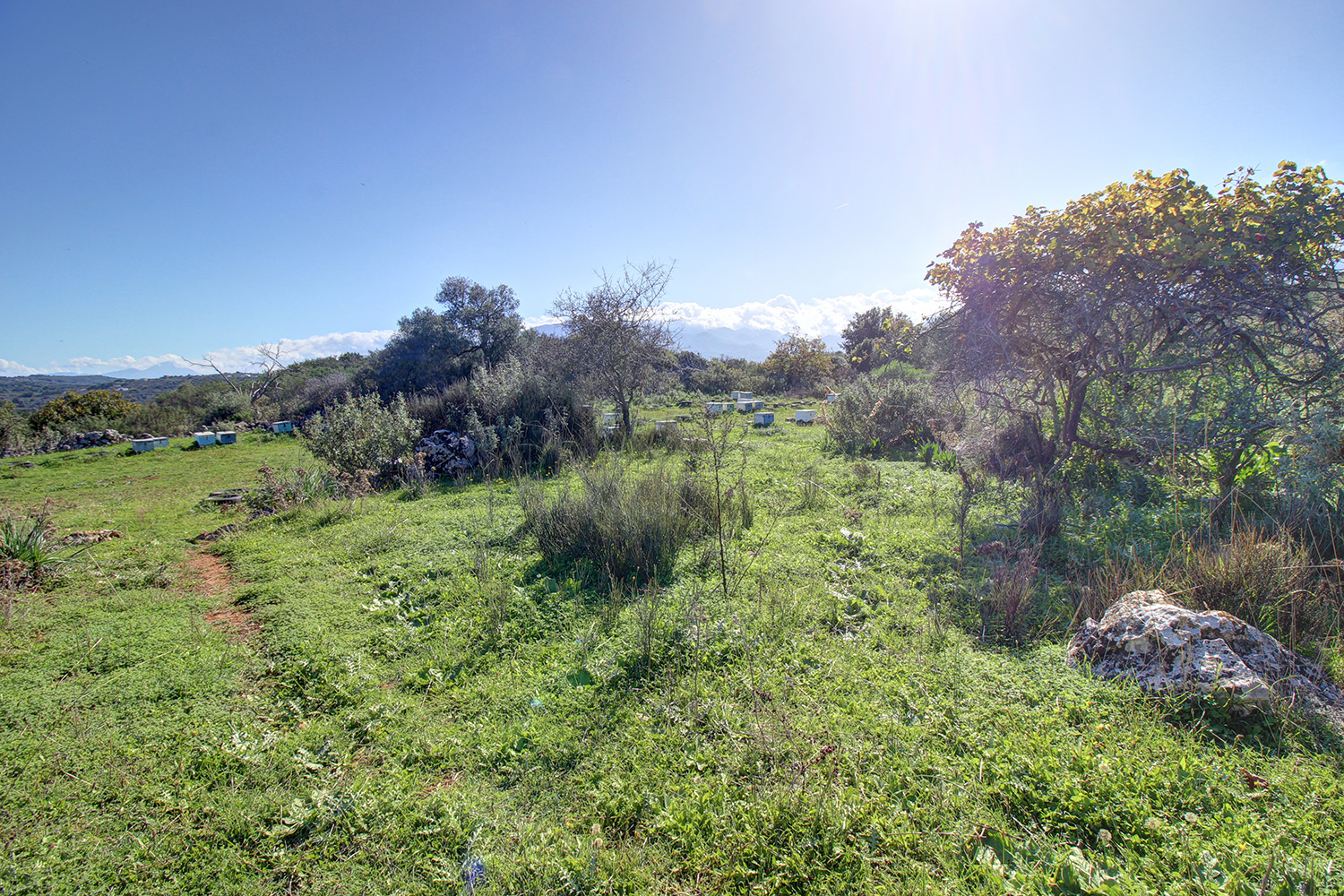 The property is in an excellent location in nature, where it is surrounded by olive groves and the wild Cretan landscape. It is a buildable plot with good shape, on which there are some olive trees and low shrubby vegetation. The ground is rocky, has a gentle southwest slope and from all points the views are unobstructed towards the White Mountains. From the highest point there are views to the north up to the sea in the background, which will be quite good if you build an upper floor. An accessible dirt road reaches the property while there is an asphalt road at a distance of about 350 m.