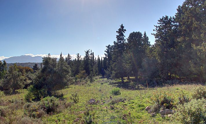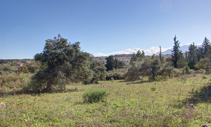 The property is an excellent choice if you are looking for a good-sized plot for a large residence within walking distance from the center of Vamos. It is triangular in shape and has a large frontage on a rural road, which remains accessible by a conventional car all year round. The location is very quiet and the property is mainly surrounded by olive groves. The ground is almost flat with a gentle southern slope and there are big cypress trees, which you can keep or remove, according to the needs of each construction. From all points the views are excellent towards the White Mountains and the beautiful surrounding area.