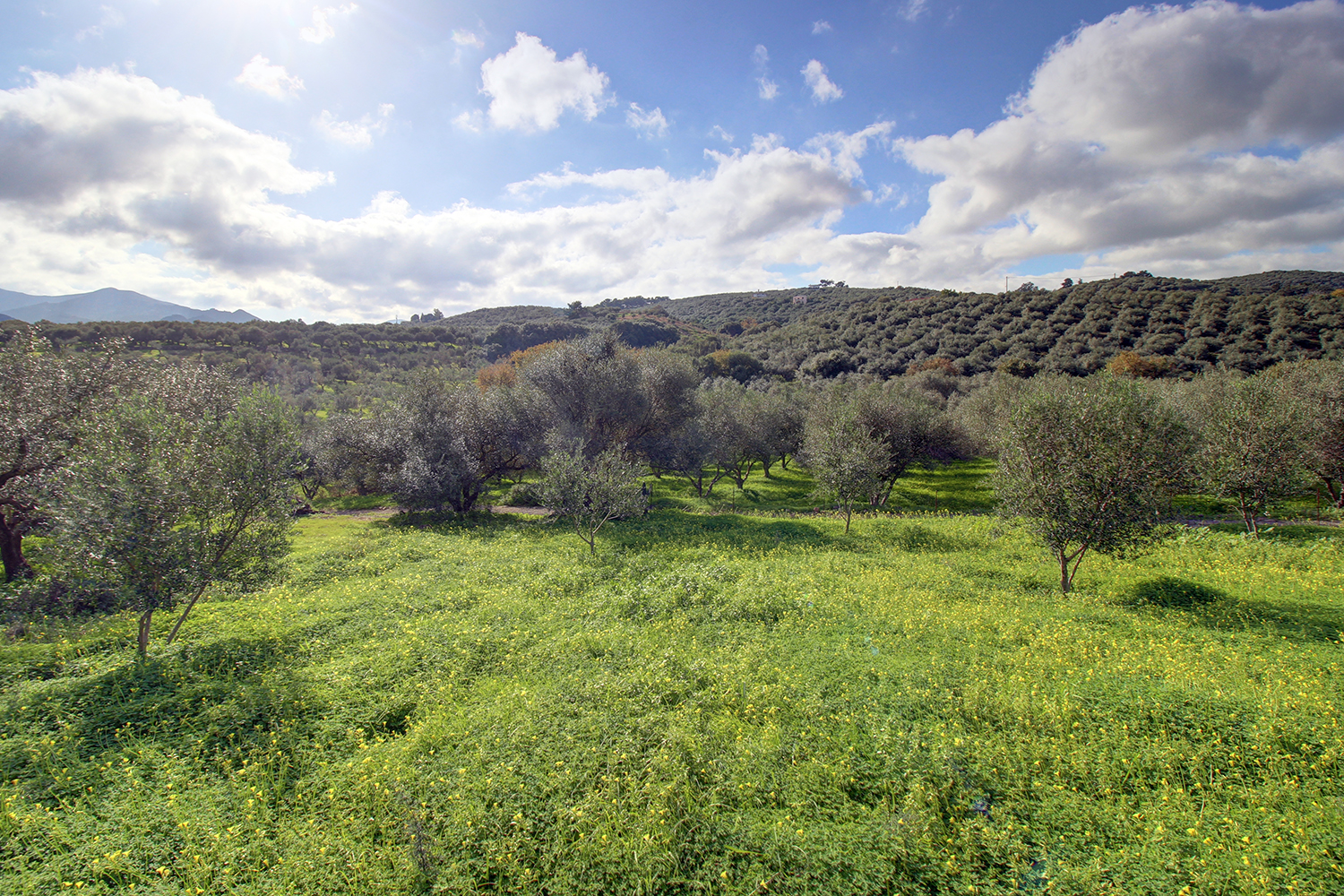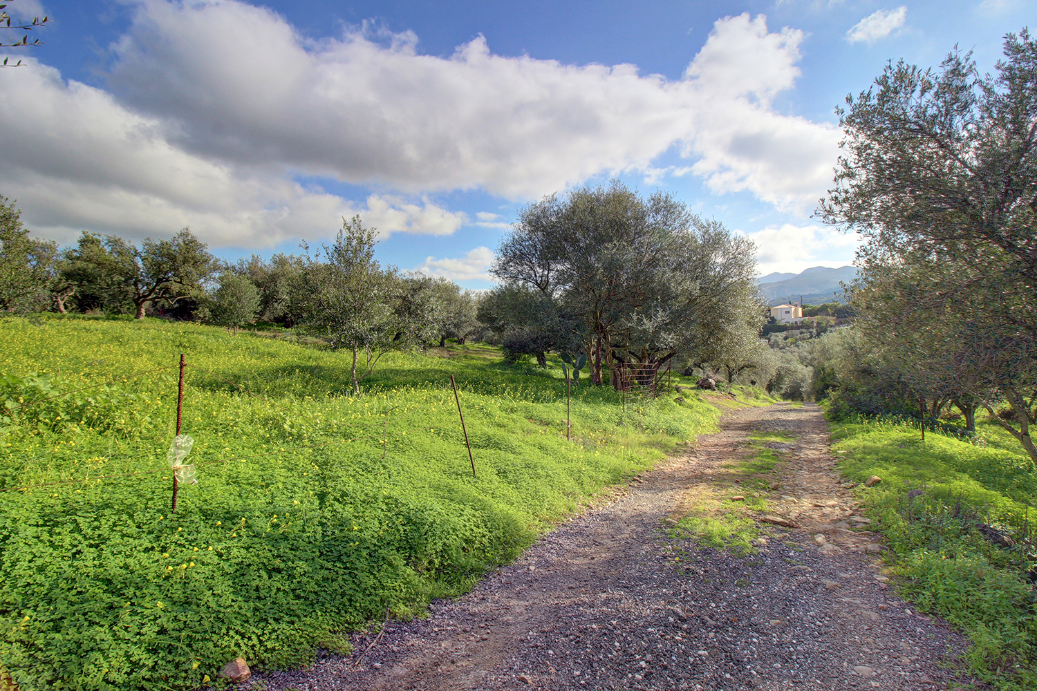 The plot is part of a larger property. It is available for sale separately or with an adjacent plot of equal area on its northern side. It is almost rectangular with average dimensions of 20 m along the frontage * 48 m. The frontage is on the west and lower side on an accessible rural road while there is an asphalt road within 80 m away. The land has a gentle western slope. There are 12 big and productive olive trees and also 6 productive, which are younger. From all points the views are beautiful on the verdant surrounding hills. The plot is a good choice for the construction of a house with a garden or a small residential complex for resale or use.