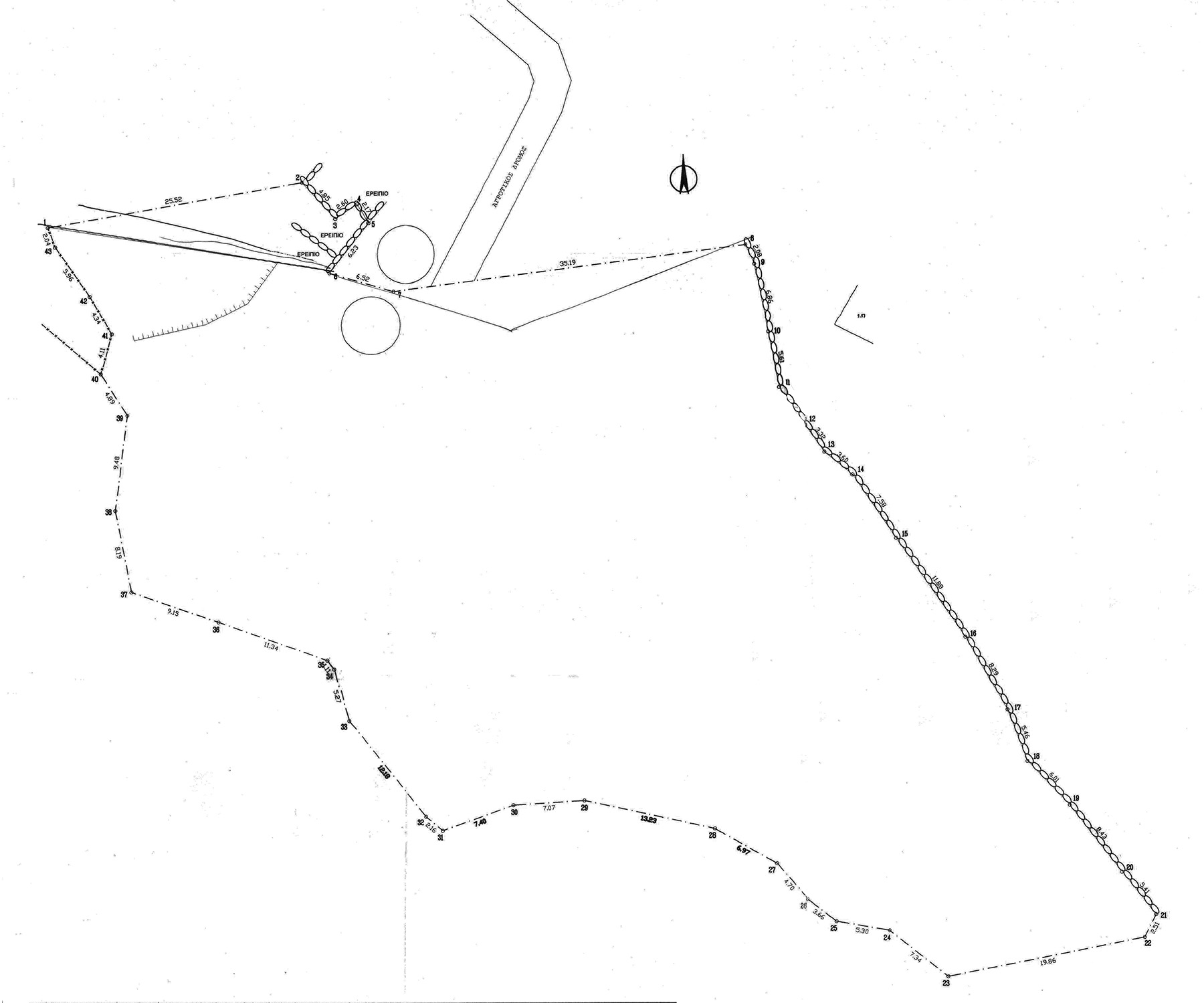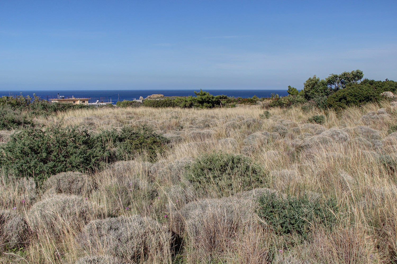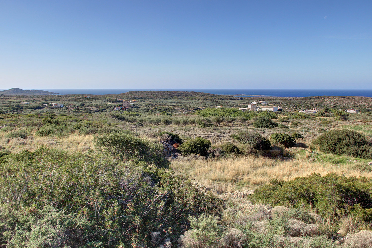 The property is just outside the village of Moni Chrisoskalitissas, about 5 minutes' drive from the popular Elafonissi. It is mainly surrounded by low native vegetation. It is a bare plot with a slight western slope, from almost all points of which the views are excellent up to the sea. The property was farmed and there are remains of an old stone threshing floor. A section has been classified as forest with the designation "Formerly Agricultural", which may set conditions on its possible future uses. A passable rural road reaches the point while the center of the village is within a short walking distance.