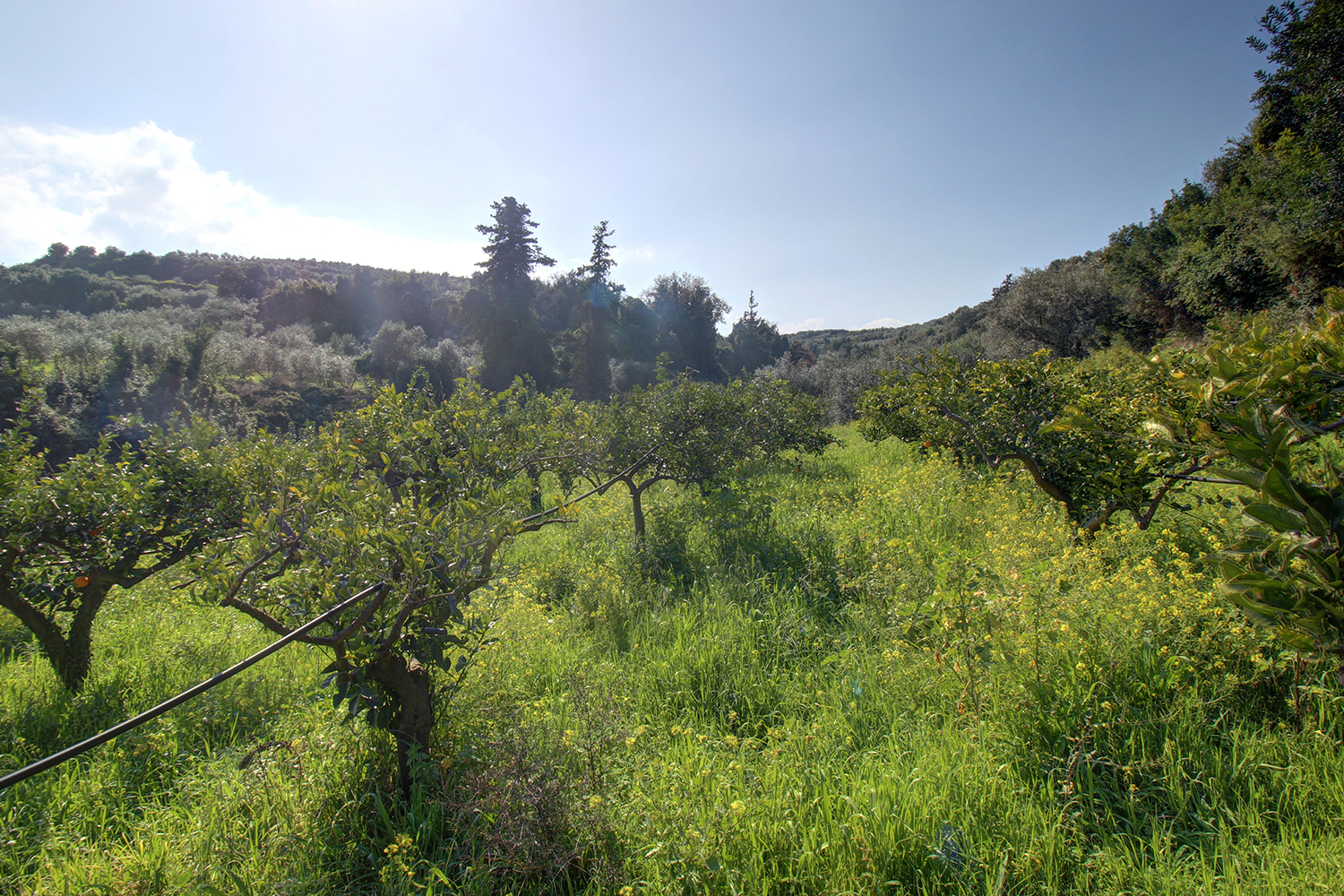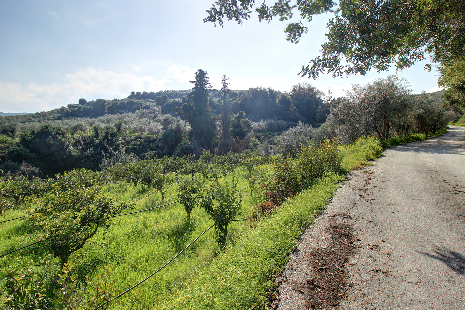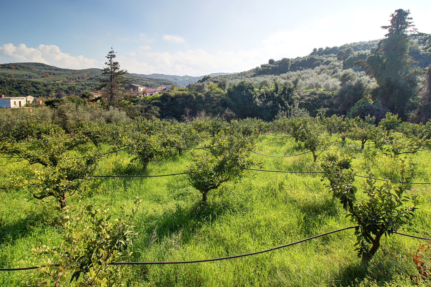 The property is located approximately 10 minutes' drive from the center of Platanias, west from Chania. It is a plot with mature orange trees, which is located in the residential zone of the village and is suitable for the construction of a small complex of apartments for resale or tourist purposes or long-term lease. The ground has a slight eastern slope that is steeper at the back, where it is adjacent to a stream. The plot has good shape and a large frontage to an asphalt road at its highest point. It has beautiful views, over a verdant valley and up to the ridge of the White Mountains.