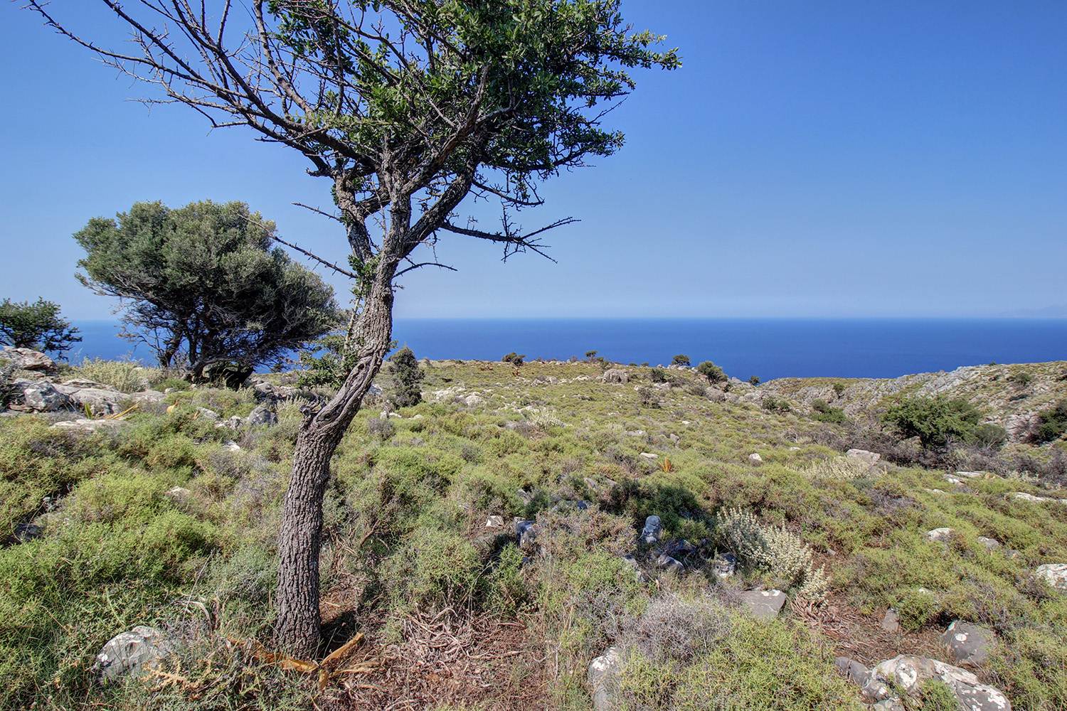 This excellent property is located at the tip of Cape Drepano, just outside the village of Kokkino Chorio. It is on a hillside with a northeast orientation, from where it has unobstructed views to the sea and the wild Cretan landscape of the surrounding area. In the area there are low vegetation and some other trees such as olive trees, wild almond trees and others. A section of 2,960 m² at the lowest level of the plot has been classified as forest. From all points the views are impressive and unobstructed. The slope of the ground is ideal and facilitates any construction.