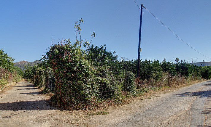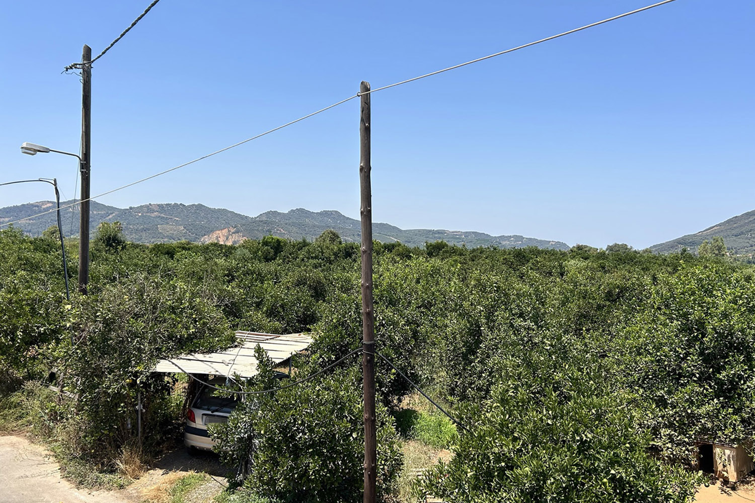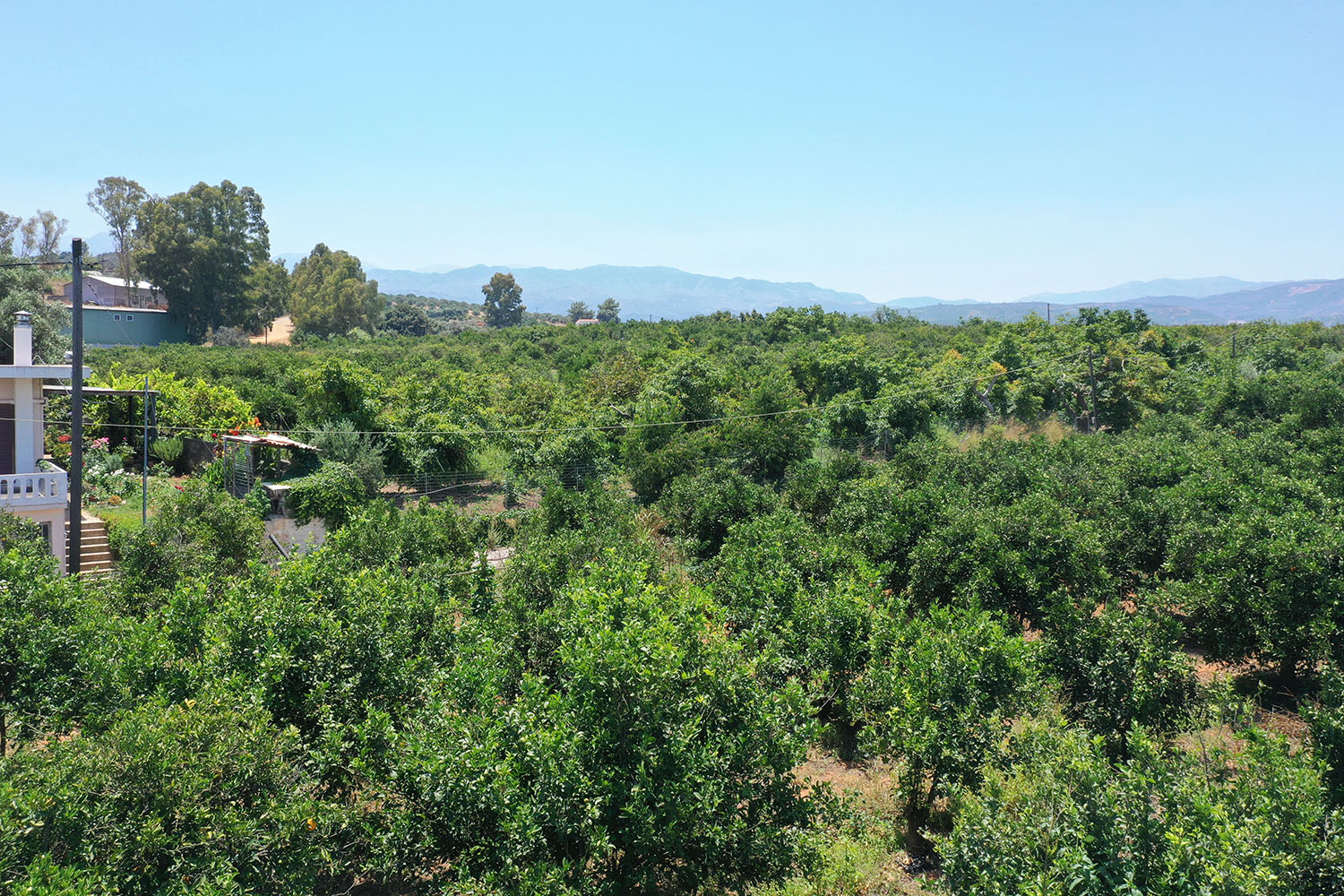 The property is in the village of Agia, on a quiet side road at the edge of the residential area. It is a corner plot, which is flat and has about 150 mature and productive orange trees. The ground is flat and its shape is almost square. The frontages are along the south and west sides while on the east side there is a small stream. The plot is excellent for the construction of a residential complex for use or resale. It also has a significant profit margin and you can get the money of the purchase back in a short period of time. From any building you will have beautiful views from the upper level to the verdant surrounding hills and to the ridge of the White Mountains in the background.
