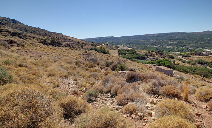 The spot is extremely quiet. A passable rural road reaches the plot while there is an asphalt road at a distance of about 80 m. The region is sparsely populated but a short distance away there are several shops that sell the essentials. In the nearby small town of Kissamos you will find big supermarkets, banks, schools of all levels, restaurants, a long sandy beach with facilities and everything else you need for your daily living. The location is also a good starting point for Falassarna, one of the most popular Greek beaches, which is about 15 minutes' drive. The city center of Chania is about 40 minutes' drive and the airport 55 minutes.