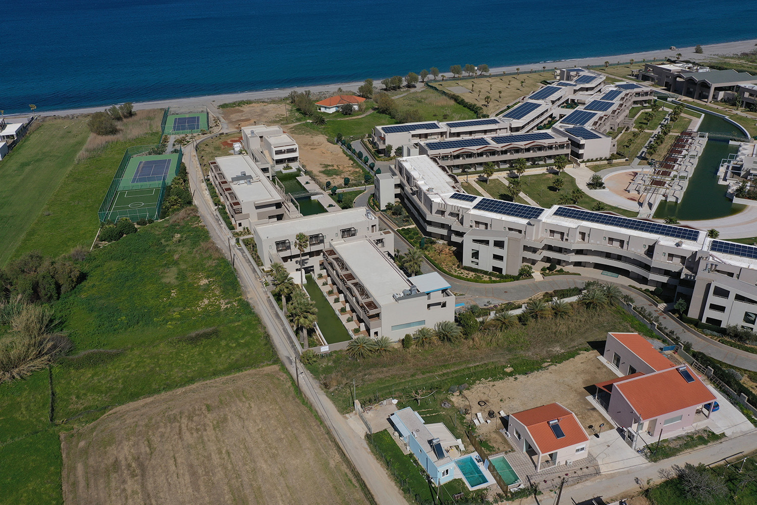 Around the property there are mainly hotels and the area has seen rapid growth. At a distance of only 200 m there is a wide and long beach, the largest part of which remains fairly quiet all year round but also has several infrastructures and areas with facilities. On Mikis Theodorakis Avenue (old highway to Chanion-Kissamos), which is also a short distance from the plot, you will find enough shops and services for your basic daily needs. The seaside small town of Kolymbari, just 1 km away, has a bank, schools of all levels, shops and services as well as several restaurants and leisure areas.