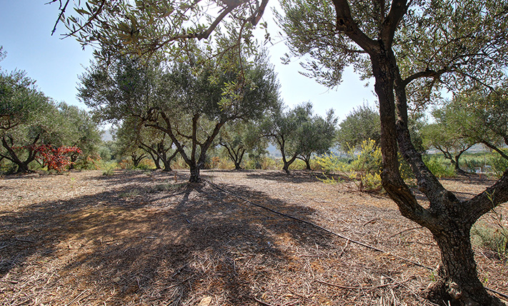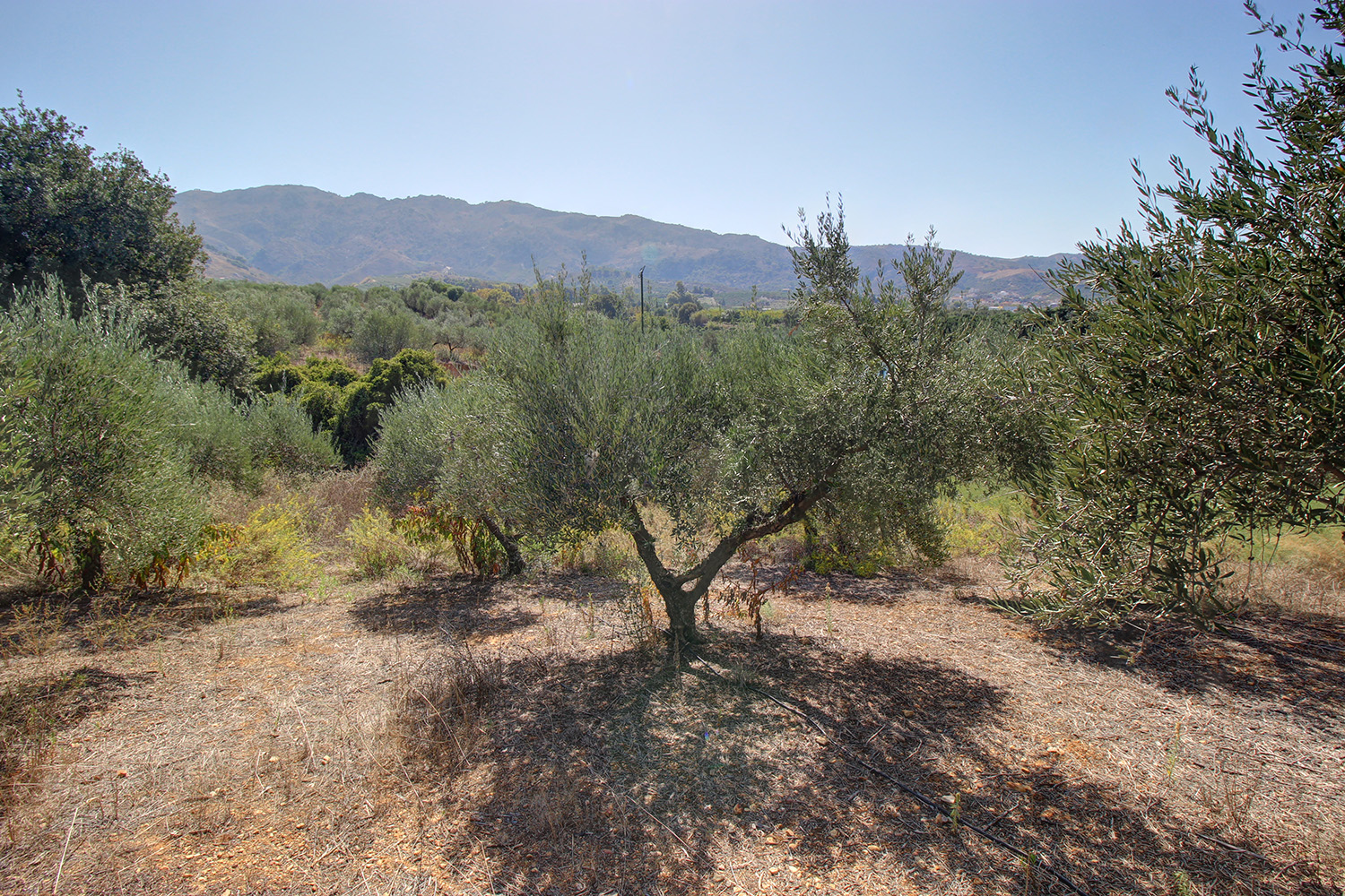 The property is in a peri-urban neighborhood, just 10-15 minutes southwest from Chania city. It is a buildable plot of land, which is easily accessible and has a frontage on a wide asphalt road. It has a nice and rectangular shape. The frontage is on the north side, where there is a slope that ensures unobstructed views over the verdant plain of Theriso, through which flows Kladisos. The ground after the slope is almost flat and there are about 90 mature and productive olive trees.