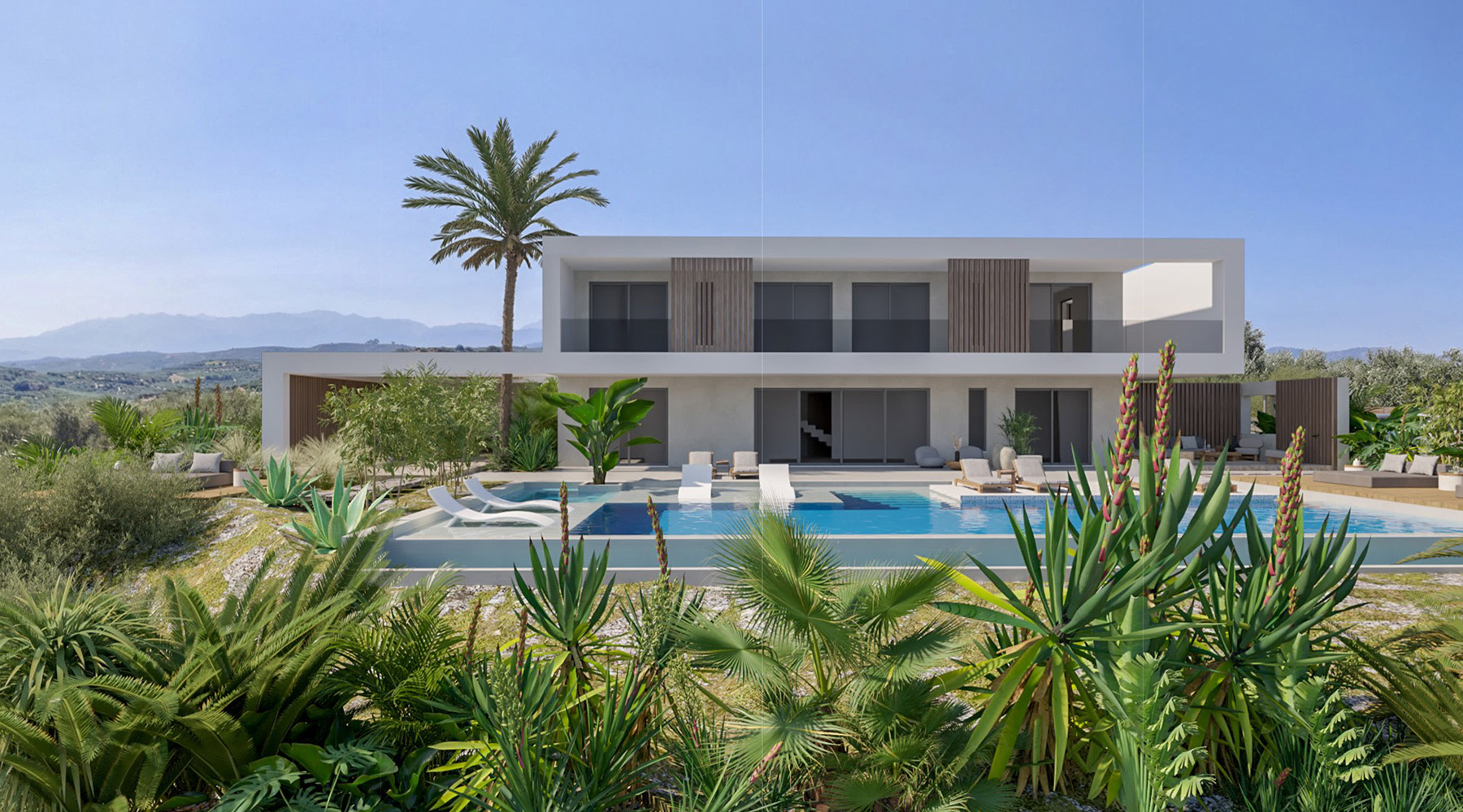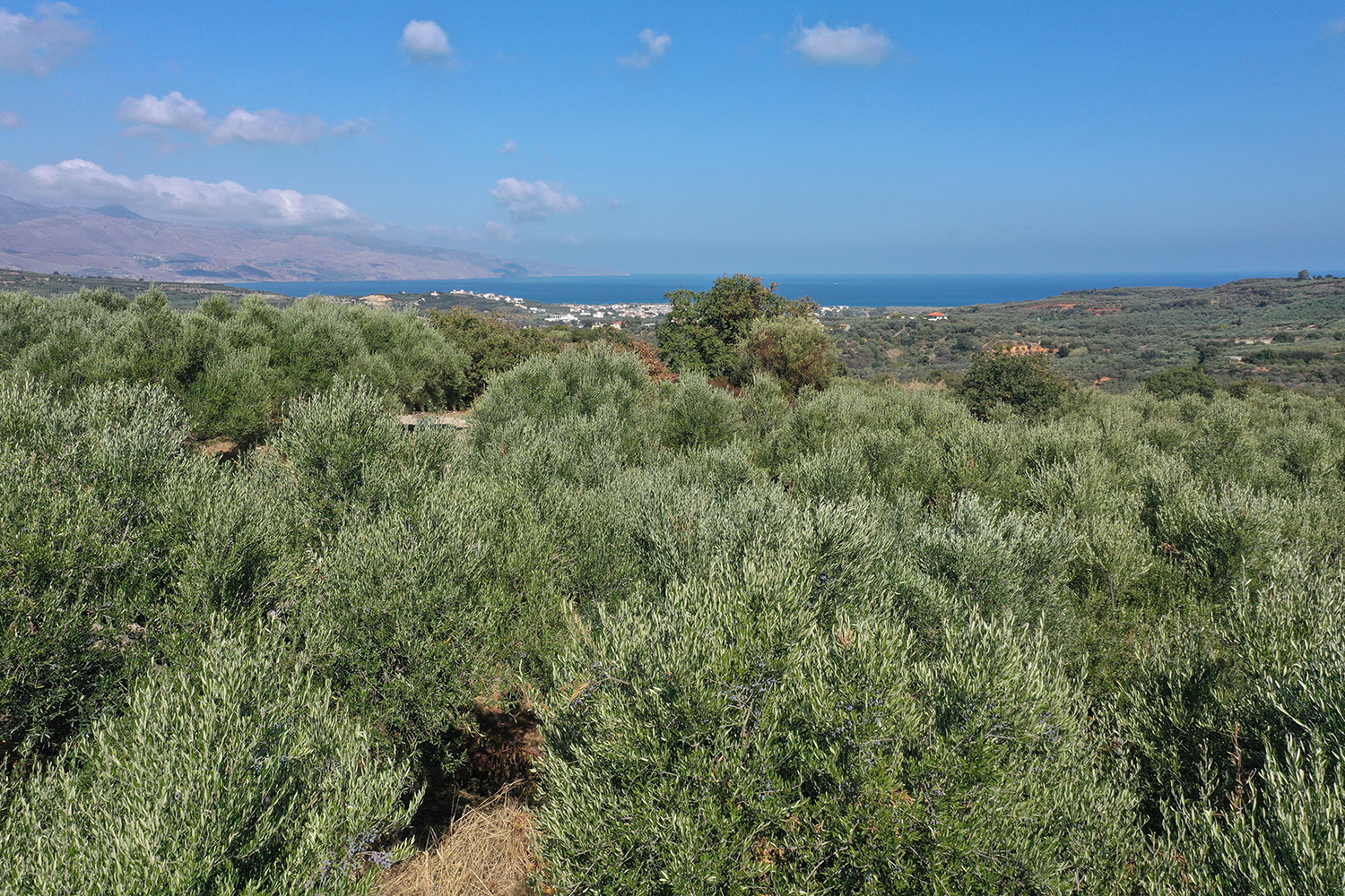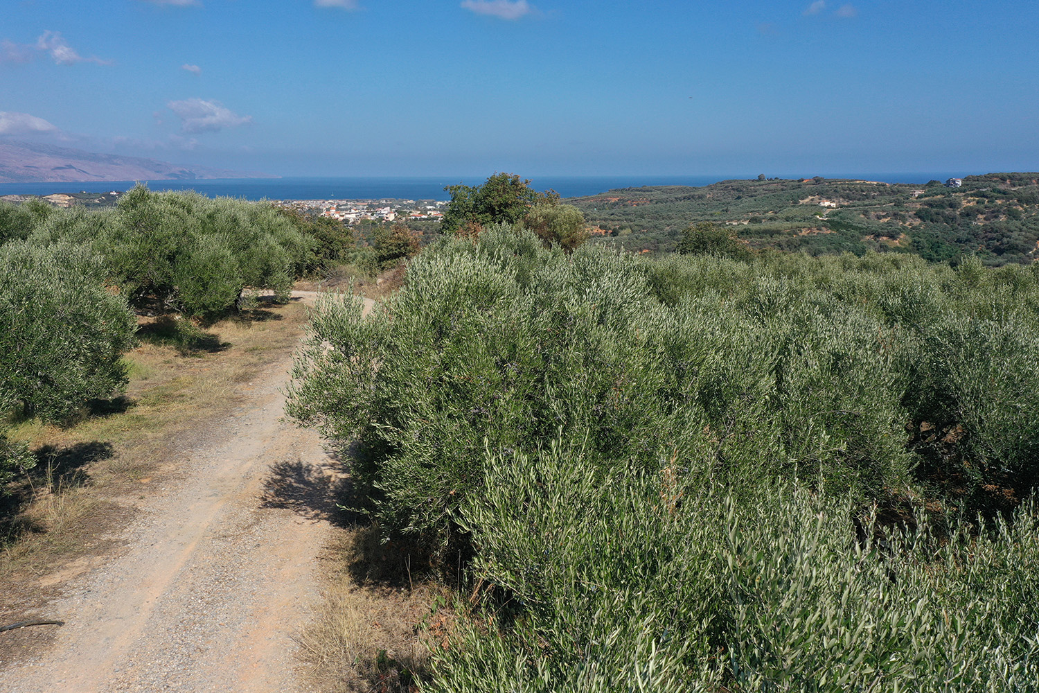 The property is located in a verdant area and is surrounded by countless olive groves. It is a buildable plot, on which there are approximately 60 mature and productive olive trees. It is situated on a hillside with a gentle eastern slope, from where the views even from the natural ground level are impressive to the olive groves of the area and up to the sea and the White Mountains in the background. The location is extremely quiet and the property is a very good choice if you want to stay in a secluded area in the nature. For the property an architectural study has been carried out for the construction of a luxury residence, which after negotiation can be included in the sale. The residence of the study has 5 bedrooms and is arranged over two levels but in any case you can build anything according to your needs.
