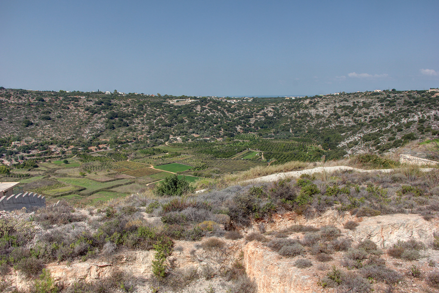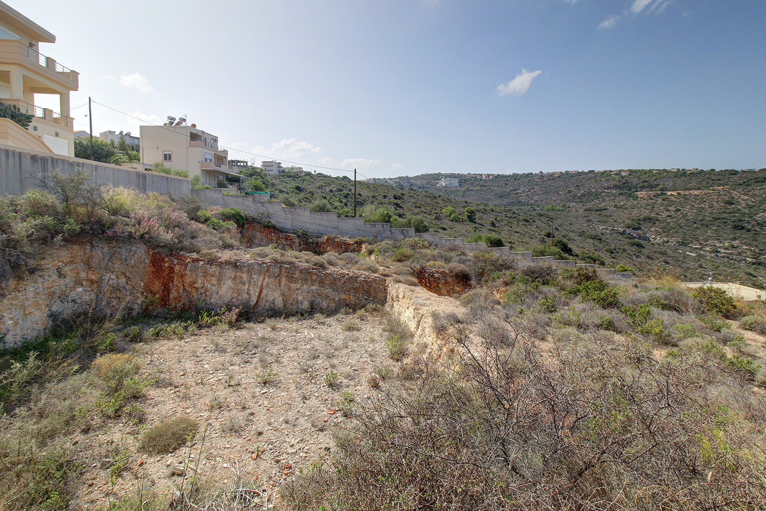 The spot is quiet and suitable if you want to build something close to nature and a little outside the city. It is also almost at the same distance from the center of Chania that is 15 minutes' drive away, the port of Souda and the airport, where you can go in about 10 minutes' drive. The region is verdant and of high residential interest. In nearby Kounoupidiana you will find big supermarkets, medical center, schools of all levels and all kinds of shops and services.