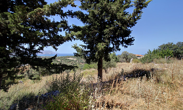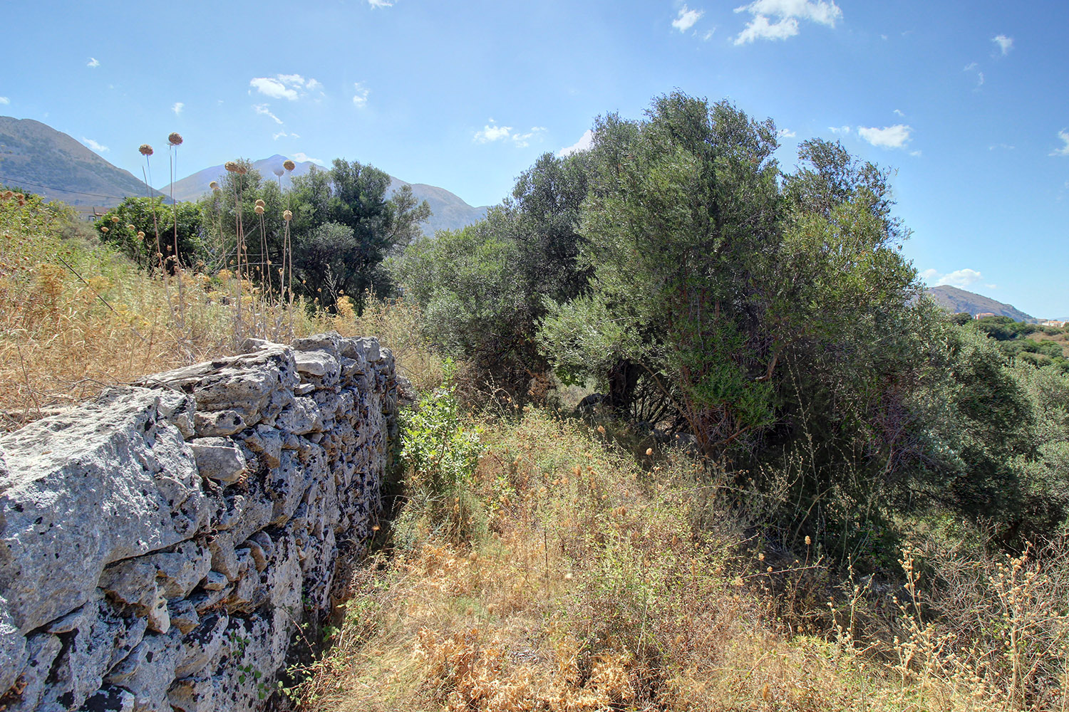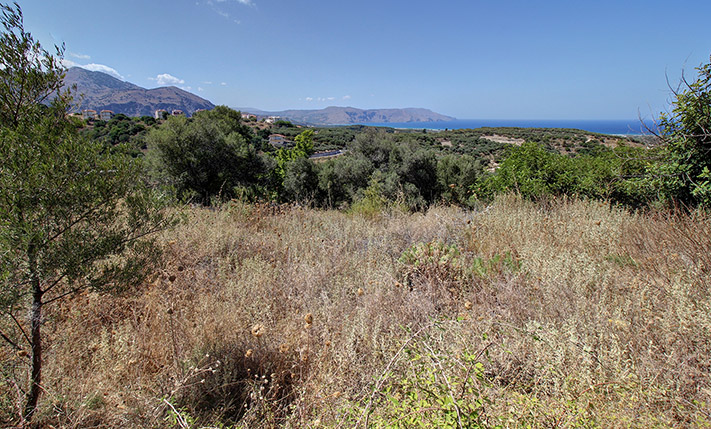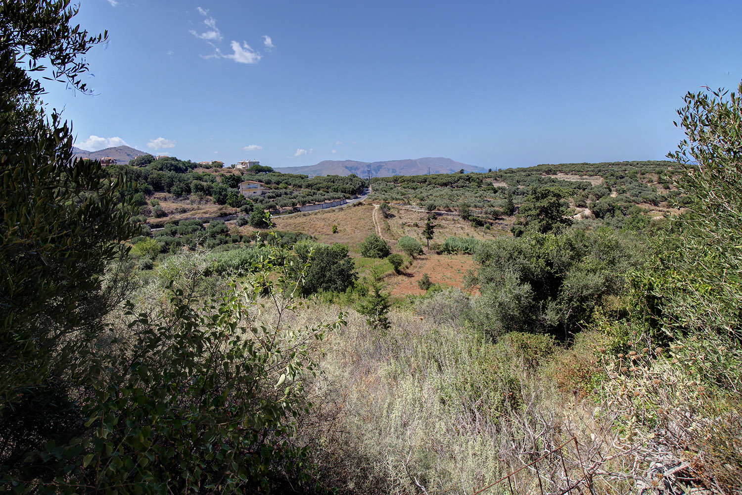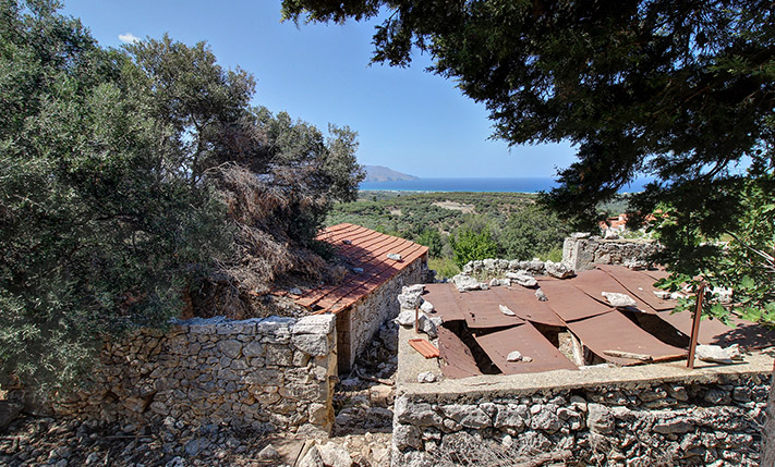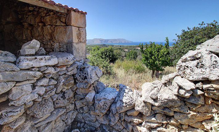 The property is on the edge of a traditional village of Apokoronas, east from Chania city and 25 minutes west from the center of Rethymnon. It is a sloping plot with north orientation and good shape, which has frontages on asphalt roads at the highest and the lowest levels. It is an old pasture land and the ground is divided into large terraces that are separated by dry stones. The area is abandoned and there are some big cypress trees and some olive trees. Approximately in the middle of the plot there is an old rural complex of buildings with beautiful traditional elements and traces of an old cobbled alley. The elevation difference from the highest to the lowest point ensures unobstructed views to the sea. It is a rare and hard-to-find property if you are looking for something with traditional features, impressive unobstructed views and a large plot. The plot allows you, among other things, to construct a modern building with a total area of up to 210 m² main spaces.